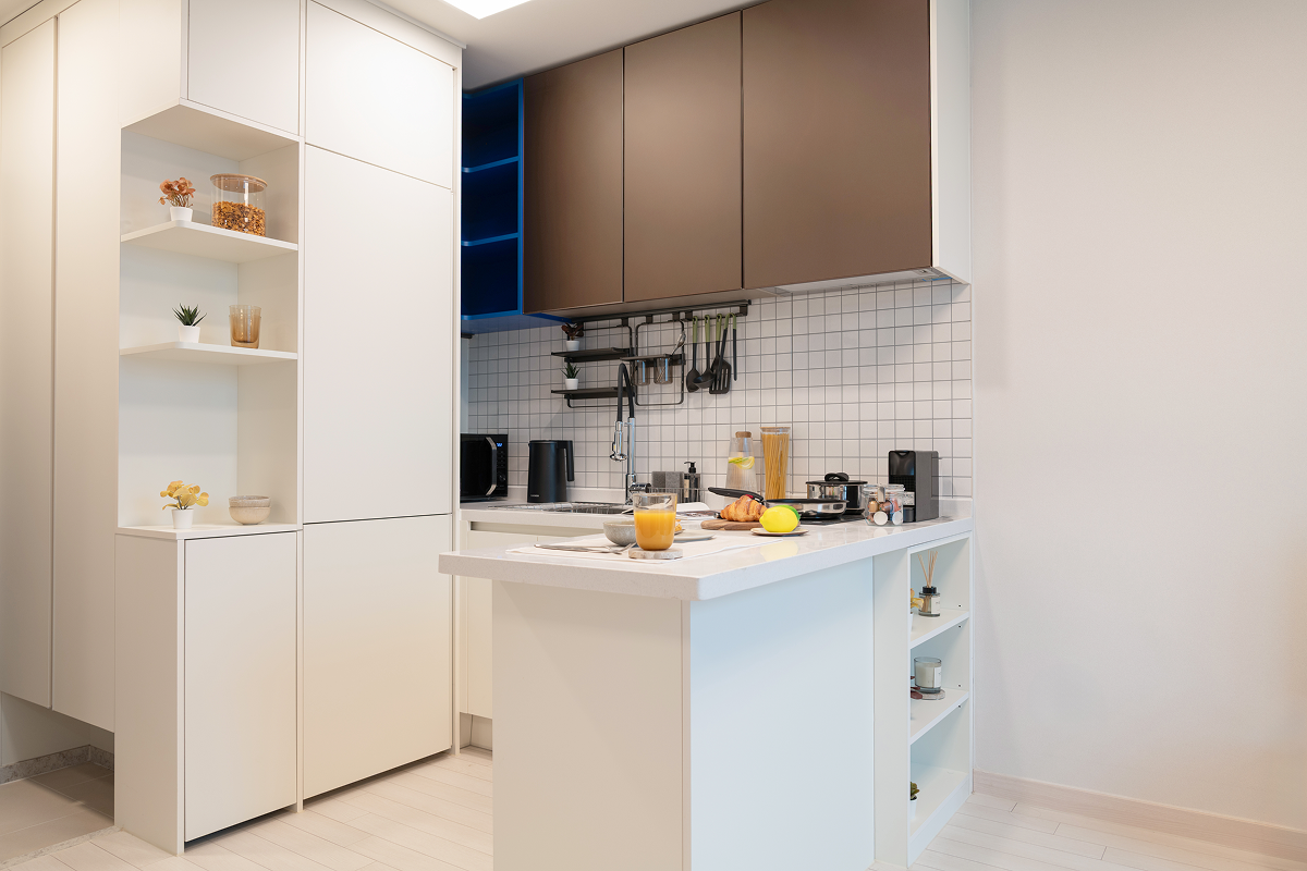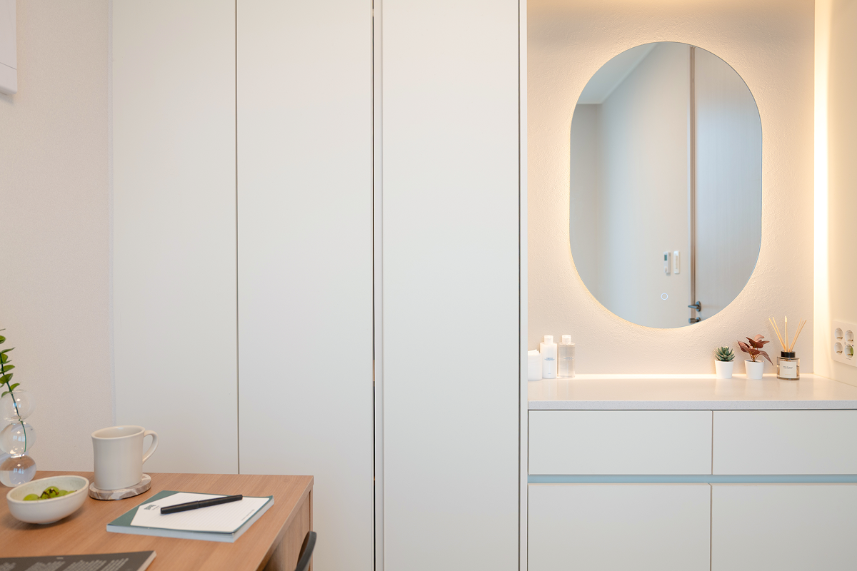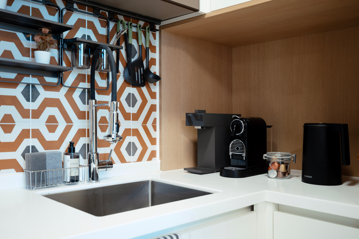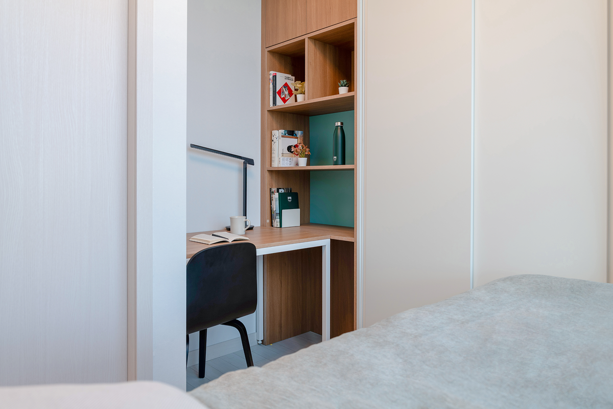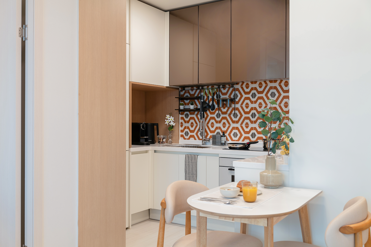 以基本家電與傢俱齊全的全配式(full-furnished)格局,入住即可生活。配有飯店等級牀鋪、收納空間、冰箱、洗脫烘一體機等主要設備,也很適合長期居住。依房型不同,廚房、浴室等部分設施會包含在房內或採共用空間方式使用,房型配置各有差異,可依個人偏好與預算選擇。