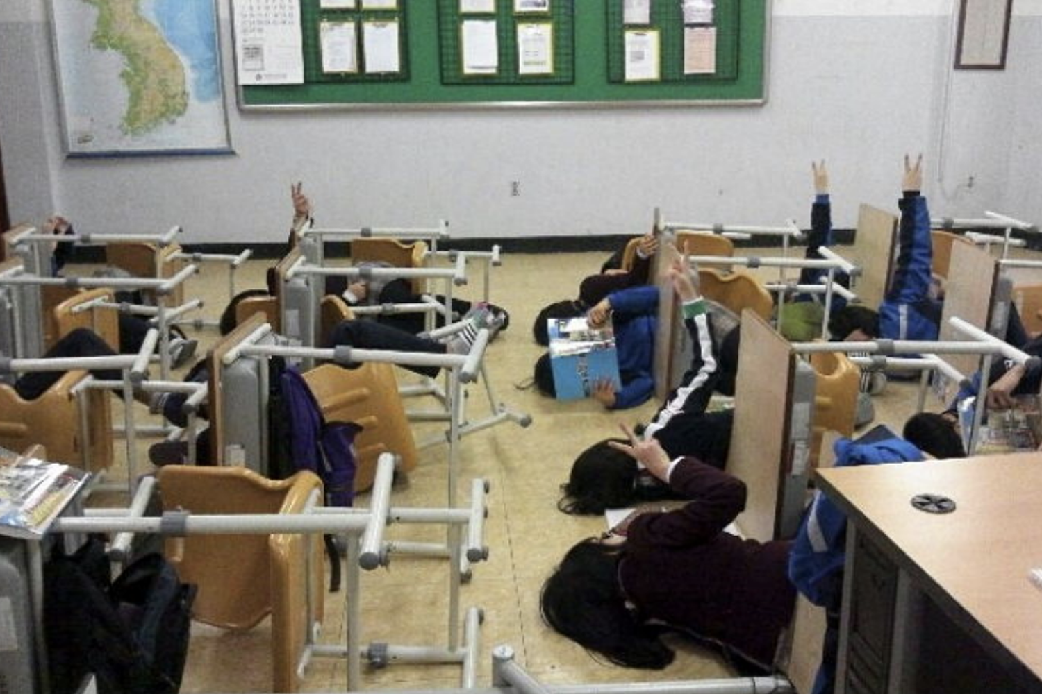 ยอมใจกับการแบกโต๊ะเก้าอี้ขึ้น ๆ ลง ๆ ของนักเรียนเกาหลีจริง ๆ ค่ะ! โดยเฉพาะถ้าห้องเรียนอยู่สูง ๆ ด้วยแล้ว การจะแบกของลงมาเพื่อแกล้งคุณครูในวันเอพริลฟูลส์เดย์แบบนี้ก็แอบเหนื่อยเหมือนกันนะคะ