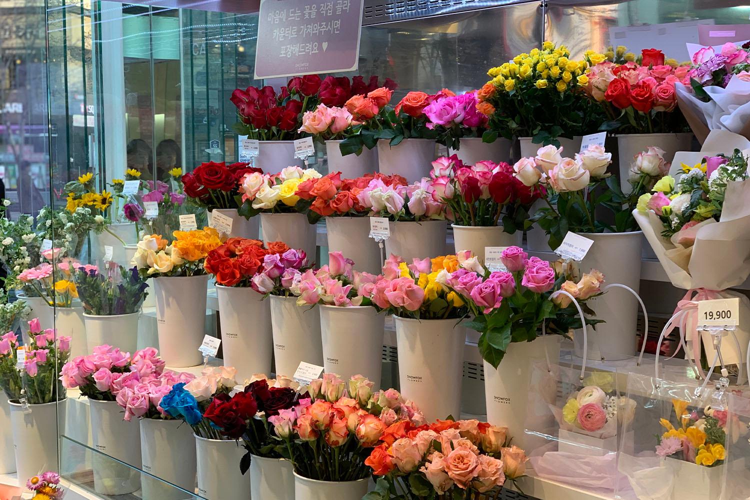 SNOWFOX FLOWERS เป็นร้านดอกไม้ที่มีหลายสาขาทั่วประเทศเกาหลีเลยค่ะ แถมยังได้คะแนนรีวิวมากถึง 4.26 คะแนนในเว็บไซต์ Naver เลยนะคะ