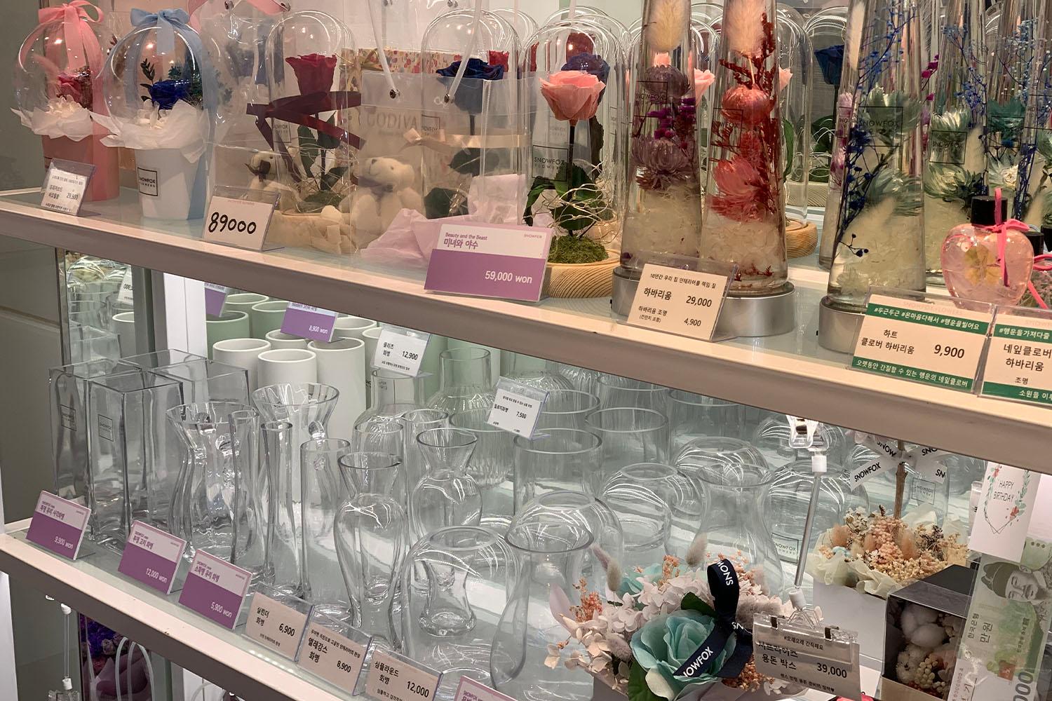 เมื่อเร็ว ๆ นี้ดอกไม้ที่ประดับอยู่ในหลอดแก้วยังได้รับความนิยมมากขึ้นเรื่อย ๆ และมีชาวเกาหลีจำนวนไม่น้อยที่จะซื้อกลับไปประดับที่บ้านค่ะ
