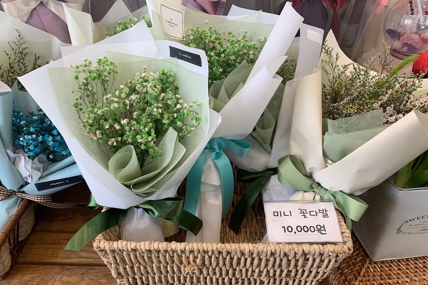 ดอกยิปโซที่พวงใหญ่ขนาดนี้แต่มีราคาเพียง 3,900 วอนเท่านั้นเองค่ะ! ถ้านำไปจัดเป็นช่อจะต้องสวยมากแน่ ๆ เลยค่ะ