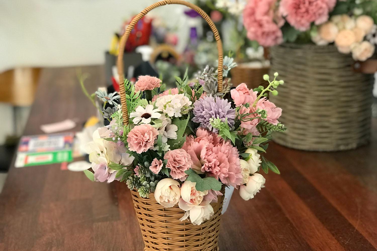 หรือจะให้จัดเป็นกระเช้าดอกไม้ก็ได้เช่นกันค่ะ