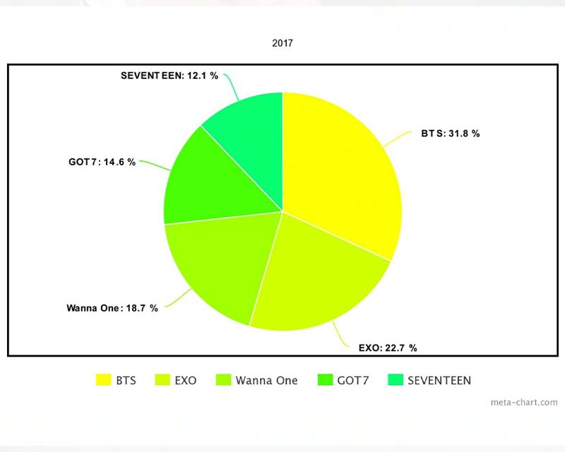 จาก Google Analytics เราสามารถที่จะย้อนไปดูศิลปินที่ได้รับความสนใจและถูกค้นหามากที่สุดของในแต่ละปีที่ผ่านมาได้ ทำให้ได้รู้ว่าอันดับของไอดอลกรุ๊ปชายที่ทรงอิทธิพลที่สุดมีการเปลี่ยนแปลงอยู่ตลอดเวลาในช่วง 10 ปีที่ผ่านมา แต่บางวงก็สามารถรั้งอยู่ในท็อป 5 ได้เป็นเวลาหลายปี