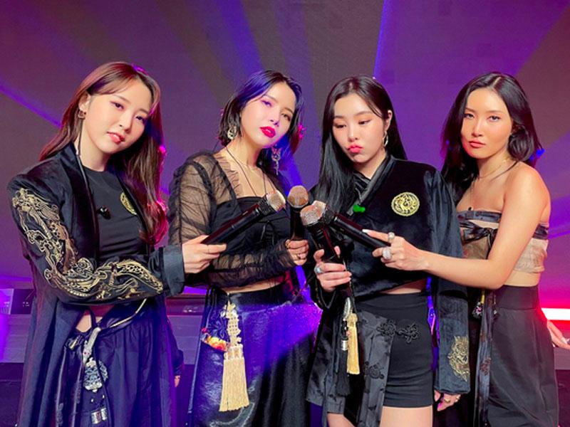 HOT ISSUE เกิร์ลกรุ๊ปจากเกาหลีในชุดแดงลายสก็อต โพสต์ท่าทางที่มีสไตล์หน้าเวที