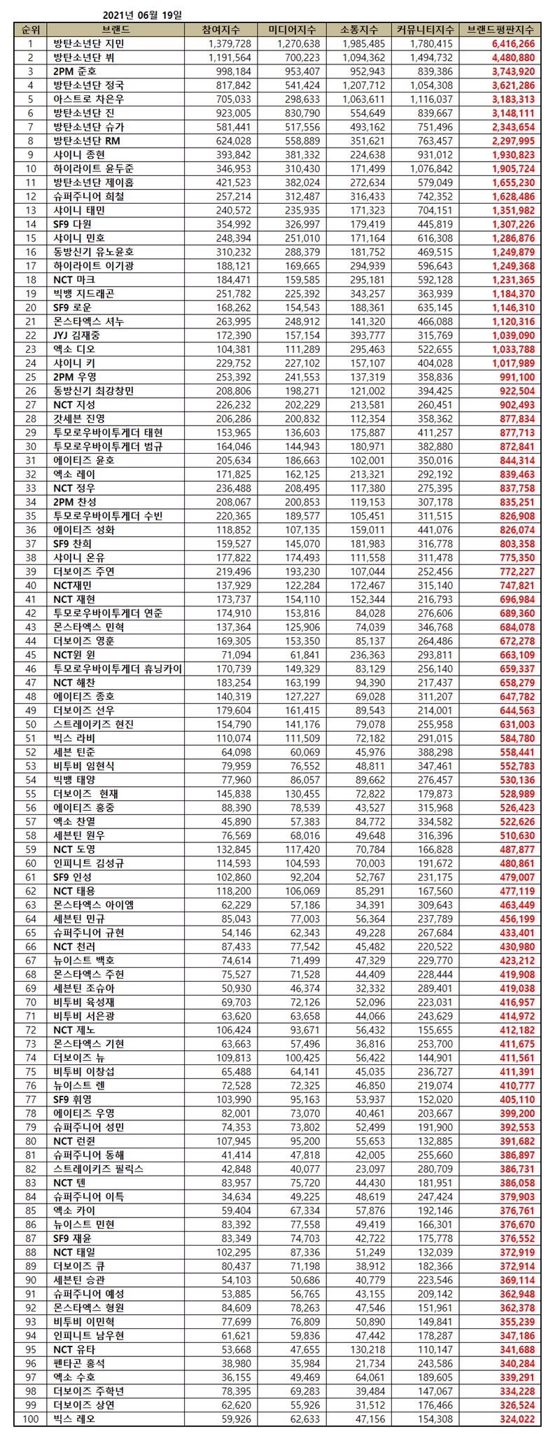 โดยเก็บข้อมูลตั้งแต่ 19 พฤษภาคมจนถึง 19 มิถุนายน 2021 ไปดูพร้อมๆกันเลยดีกว่าค่ะว่าเมนของใครจะติดกันบ้าง จีมิน BTS จะสามารถครองที่ 1 ไว้ได้มั้ย ไปดูกันค่ะ~