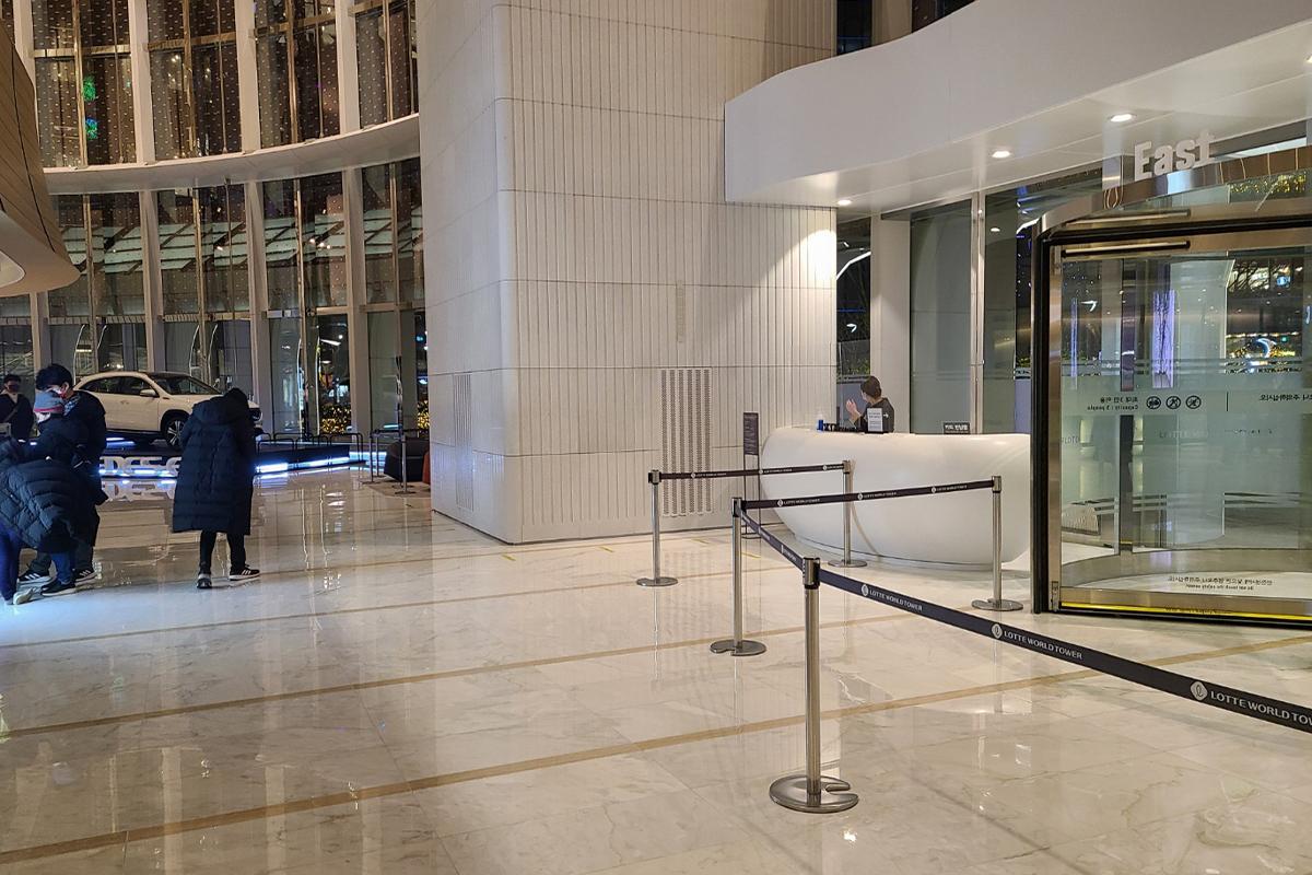 ตู้จำหน่ายตั๋วและลิฟต์ความเร็วสูงมีให้บริการที่บริเวณชั้นขายตั๋วบนชั้น B1 ของ Lotte World Tower หากขึ้นลิฟต์นี้จะไปถึงชั้น 117 พร้อมจุดชมวิวภายใน 1 นาทีค่ะ