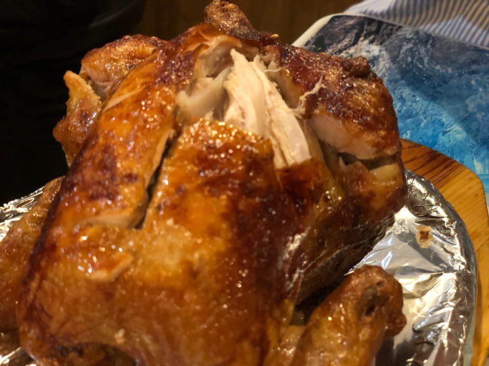 ไก่ทั้งตัวย่าง (한방통닭) เสนอราคาที่ 18,000 วอน ซึ่งถือว่าไม่ถูกเลย แต่ถถึงอย่างนั้น ทางร้านได้ทำการย่างไก่ด้วยถ่านเป็นเวลานาน ทำให้ไก่หอมกลิ่นย่างและมีความชุ่มฉ่ำ ภายในท้องไก่นั้นไม่ได้ว่างเปล่า แต่มีข้าวและสมุนไพรเกาหลีเติมเต็มอยู่ด้านใน ตัวข้าวเข้ากันมากกับกิมจิและฮันนี่มัสตาร์ด