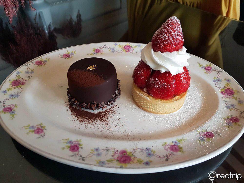 เค้ก, ขนมหวานชิ้นเล็กๆ และหอคอยขนมหวานเป็นเมนูที่ได้รับความนิยมเป็นอย่างมาก เราอยากแนะนำทาวเวอร์ผลไม้(ทำจากผลไม้ในซีซั่นนั้น) และช็อคโกแลตมูสเค้ก สำหรับคนที่ไปที่ร้านเป็นครั้งแรก แต่ถ้าคุณอยากจะลิ้มรสชาติที่มากกว่านี้ คุณสามารถสั่งเซตชาอาฟเตอร์นูนทีมาทานเพิ่มได้ แต่เมนูนี้ต้องมีการสั่งจองล่วงหน้า แล้วคุณจะทำให้ใครหลายๆคนรู้สึกอิจฉากับเซตชาสุดพิเศษนี้