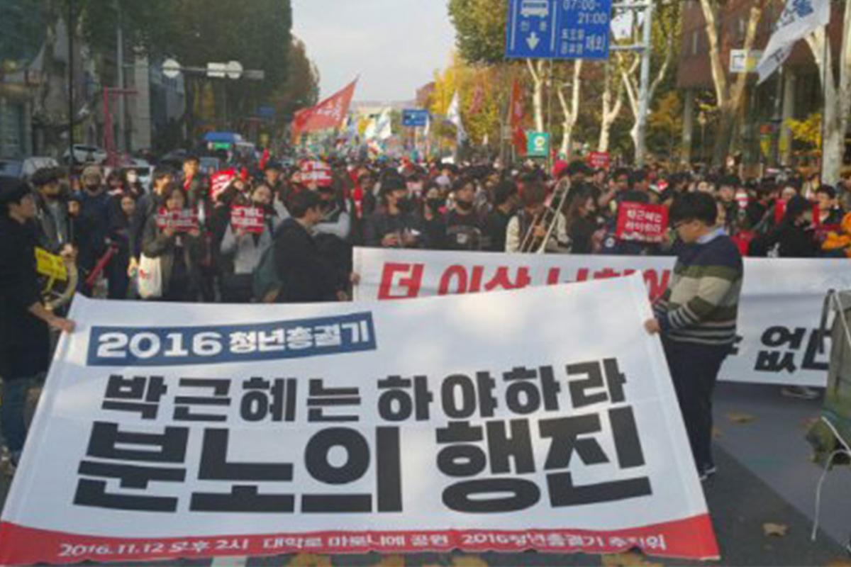 โดยในการชุมนุมเรียกร้องสิทธิสตรีจากกลุ่มแฟมินิสต์และกลุ่มต่างๆ รวมถึงศูนย์รับมือความรุนแรงทางเพศทางไซเบอร์ของเกาหลี และสมาคมแรงงานสตรีแห่งเกาหลีในเดือนกุมภาพันธ์ ผู้ประท้วงเดินขบวนบนถนนใจกลางกรุงโซลในขณะที่ลำโพงดังลั่นเพลง Into the New World ขณะถือป้ายที่เขียนว่า “ความเท่าเทียม ไม่ใช่ความเกลียดชัง” และ “แฟมินิสต์จะเปลี่ยนโลก”