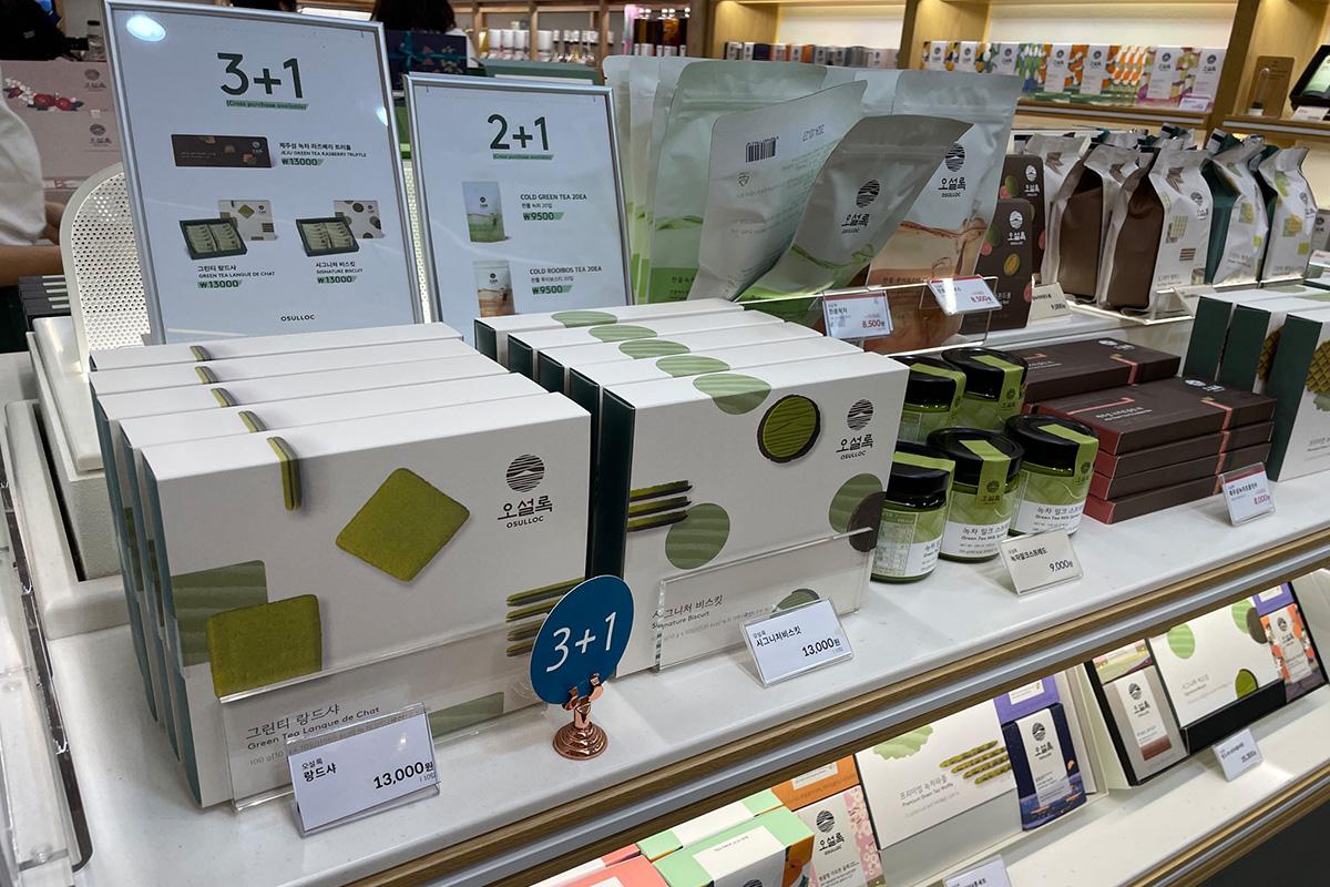 Osulloc เป็นแบรนด์ที่ได้รับคำชมอย่างมากไม่เพียงแต่จากนักท่องเที่ยวต่างชาติเท่านั้น แต่ยังรวมถึงชาวเกาหลีที่มักเลือกเป็นของขวัญที่ชื่นชอบอีกด้วย ด้วยบรรจุภัณฑ์ที่สวยงามและผลิตภัณฑ์ที่มีรสชาติอร่อย Osulloc ได้กลายเป็นแบรนด์ที่ลูกค้าไม่สามารถต้านทานได้