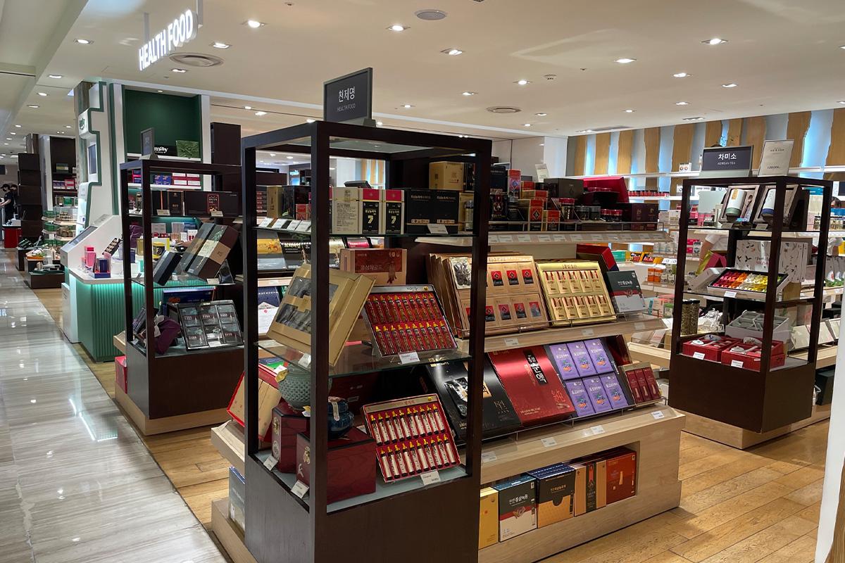 ในห้างสรรพสินค้า Lotte คุณสามารถพบร้านค้าที่ให้บริการห่อของขวัญด้วยลวดลายเกาหลีดั้งเดิมบนบรรจุภัณฑ์ รวมถึงร้านค้าที่มีตัวอย่างน่ารักหรือออกแบบอย่างสวยงามเหมือนงานศิลปะ ส่วนที่ฉันกำลังสำรวจอยู่ตั้งอยู่ที่ชั้นใต้ดินชั้น 1 ซึ่งมีผลิตภัณฑ์หลากหลายประเภท เช่น รองเท้า กระเป๋าถือ เครื่องสำอาง เครื่องประดับ และ Food Avenue ซึ่งมีตัวเลือกอาหารหลากหลาย