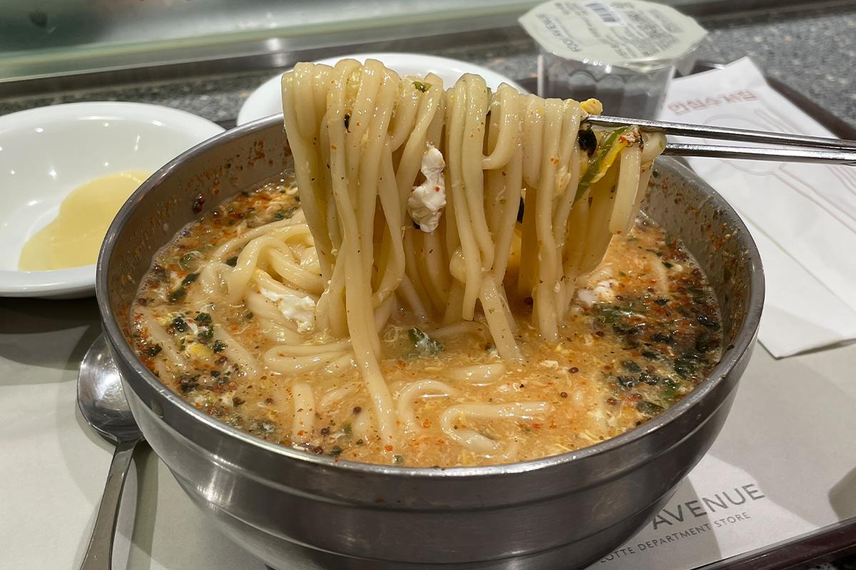 Veteran เป็นแบรนด์ที่มีชื่อเสียงโด่งดังจากอาหารที่สะดวกสบาย เช่น Kalguksu และ Jjolmyeon. Kalguksu ของพวกเขาโดดเด่นด้วยเส้นหนาและเหนียวนุ่ม พร้อมด้วยผง perilla และยังมีชื่อเสียงในเรื่องของขนาดที่ใหญ่ พวกเราลองทาน Kalguksu และ Soybean Noodles อร่อยมาก!