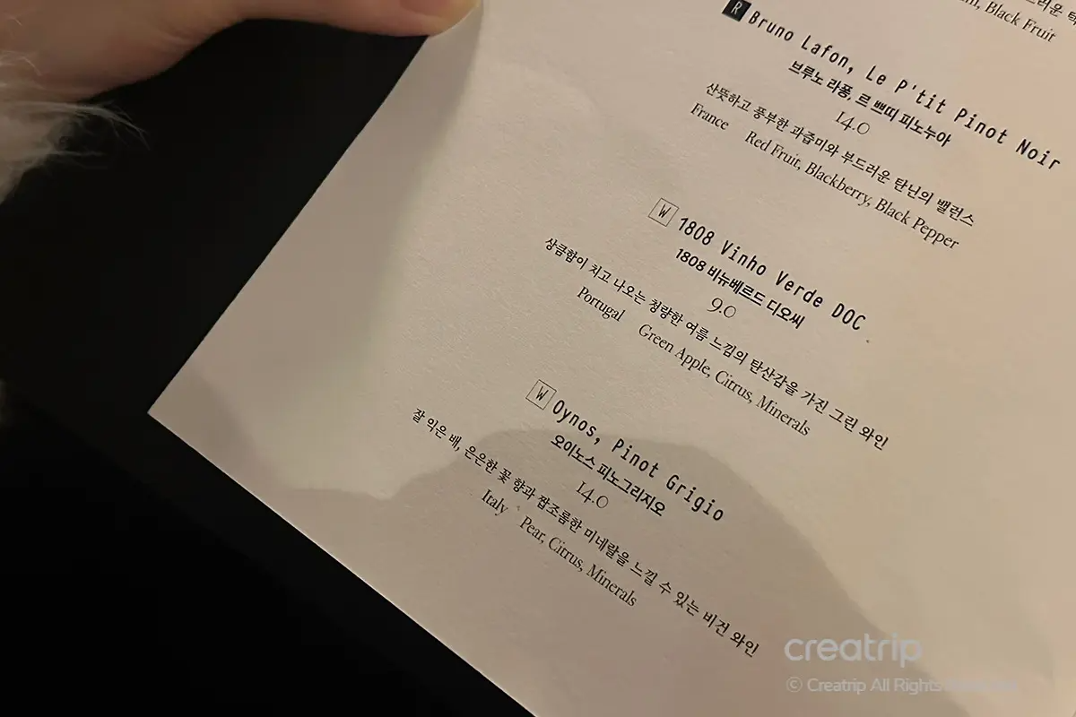 นอกจากนี้ เมื่อจองผ่าน Creatrip คุณจะได้รับไวน์ฟรีหนึ่งแก้วตามที่คุณเลือก และยังเจ๋งตรงที่ที่นี่มีไวน์วีแกนให้เลือกด้วย!