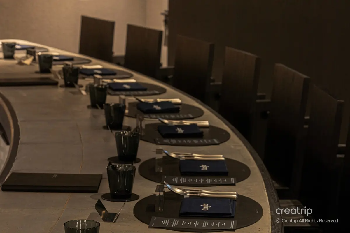 Confier มีบรรยากาศที่เงียบสงบและหรูหรา ตั้งแต่โต๊ะบาร์ไปจนถึงห้องส่วนตัว มีรูปแบบการจัดโต๊ะให้เลือกหลากหลาย