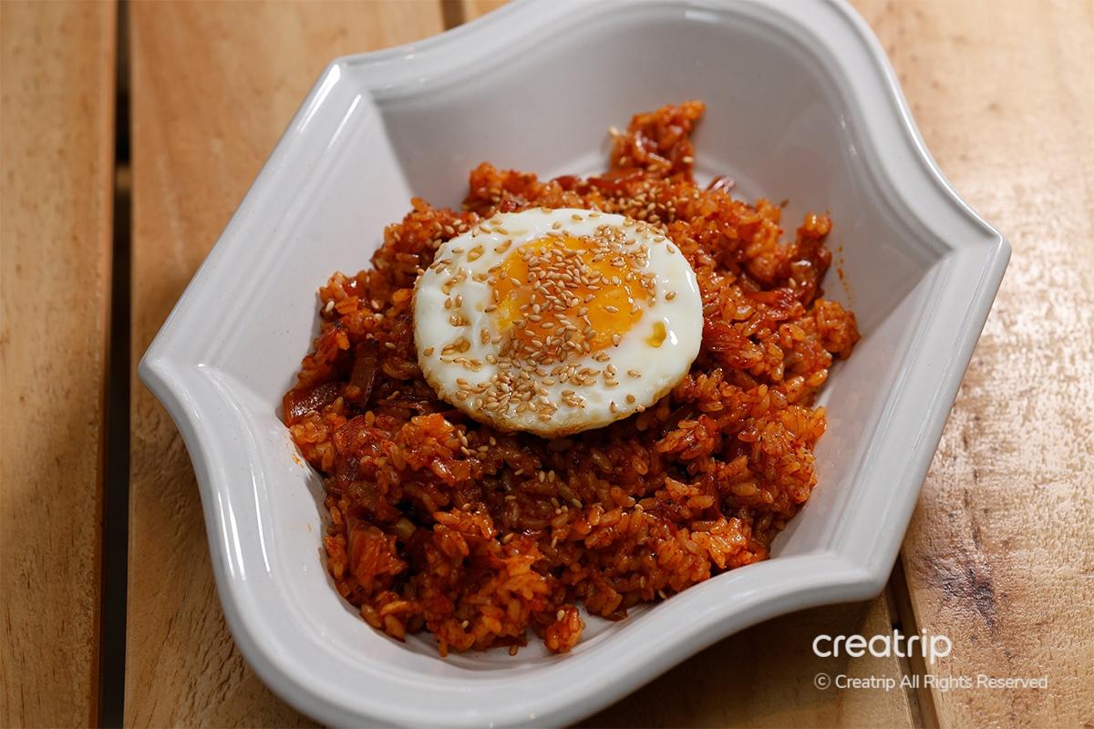 'Kimchi-bokkeumbap' รสชาติเหมือนทำจากกิมจิโฮมเมดจริงๆ ไม่เหมือนสิ่งที่คุณจะซื้อได้ นอกจากนี้ การผสมกับไข่ดาวที่มีตรงกลางนุ่มทำให้มีรสชาติกลมกล่อมและนุ่มนวลยิ่งขึ้น หลังจากทานอาหารที่มีไขมันและทานข้าวผัดกิมจิเป็นระยะๆ อาหารก็เข้าปากไปเรื่อยๆ ไม่มีหยุด