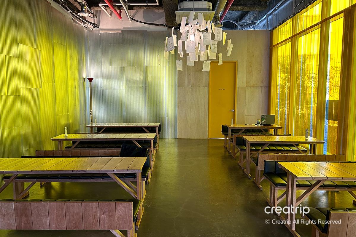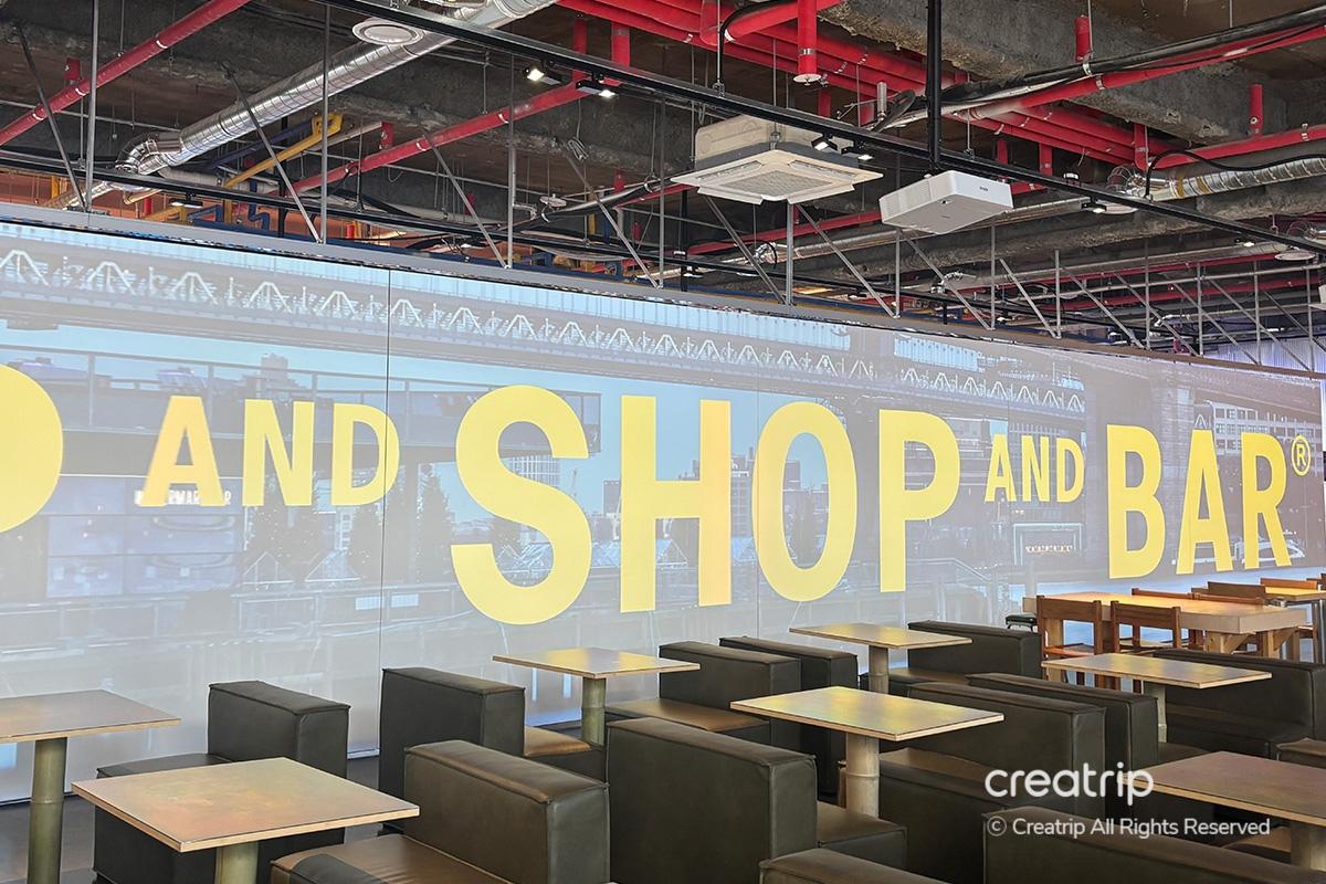 TAP and SHOP and BAR มีหน้าต่างบานใหญ่ จึงมีบรรยากาศที่สว่างในตอนกลางวัน และมันกลายเป็นที่น่าประทับใจมากขึ้นด้วยเครื่องฉายแสงหลังพระอาทิตย์ตกดิน มีตัวเลือกที่นั่งหลากหลาย จึงเหมาะสำหรับกลุ่มหรือคู่รัก