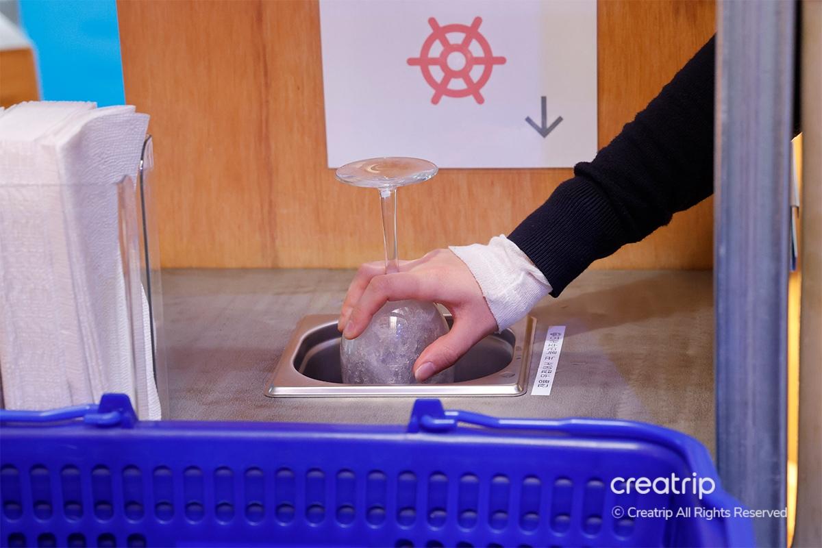 พวกเขาแนะนำเครื่องดื่มหนึ่งแก้วต่อคน ดังนั้นเมื่อเปลี่ยนไวน์ คุณสามารถทำความสะอาดแก้วโดยใช้เครื่องล้างที่นําเสนอ หลังจากล้างแล้ว กรุณาใช้กระดาษชําระที่อยู่ใกล้เคียงเพื่อเช็ดความชื้น