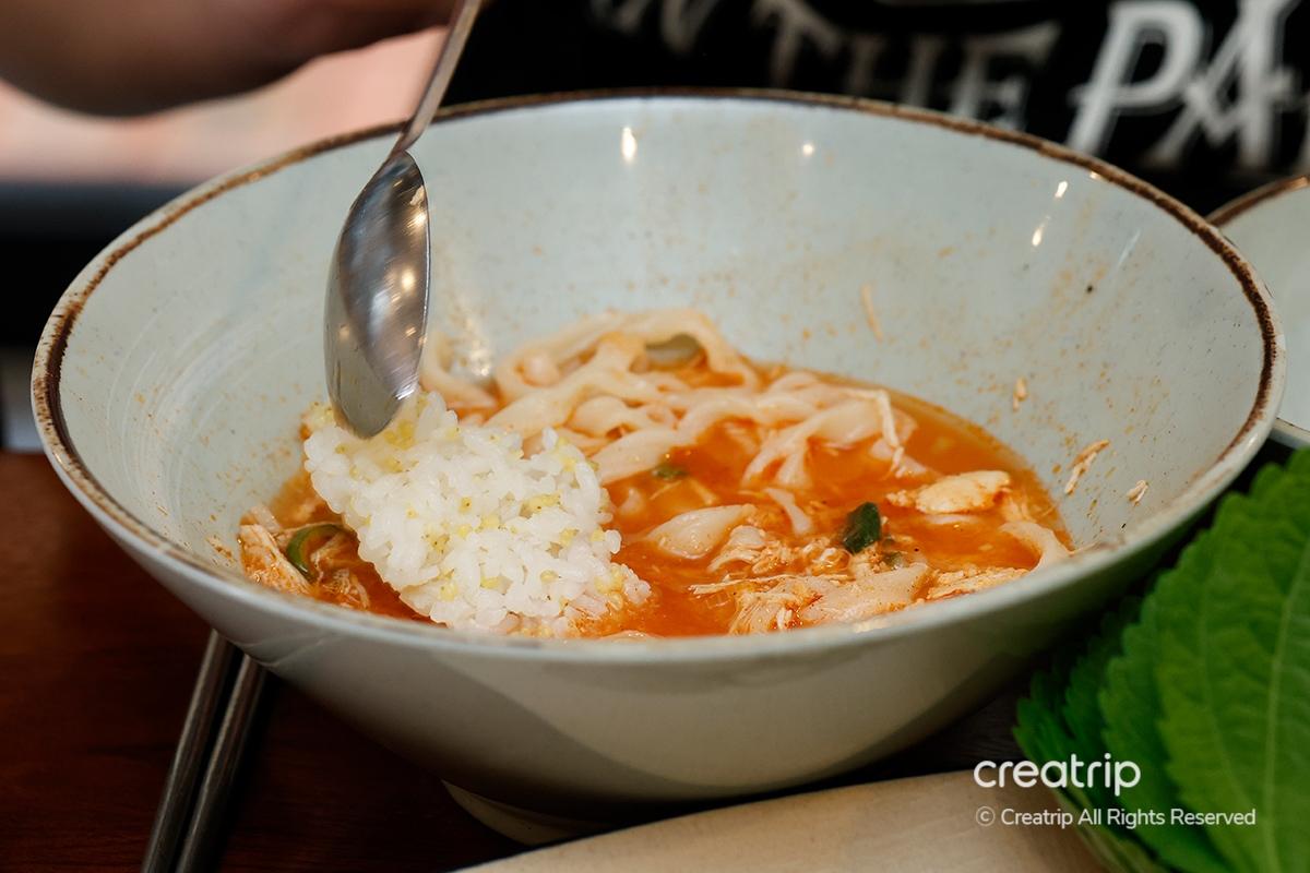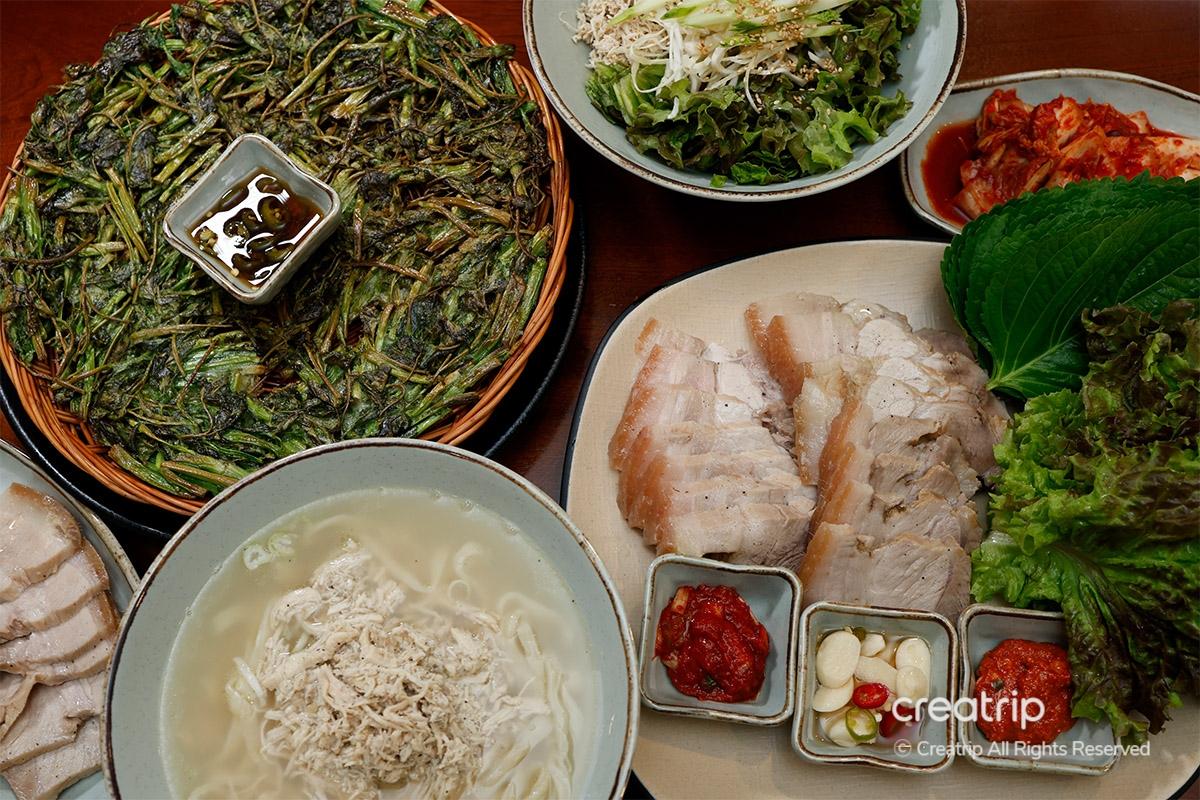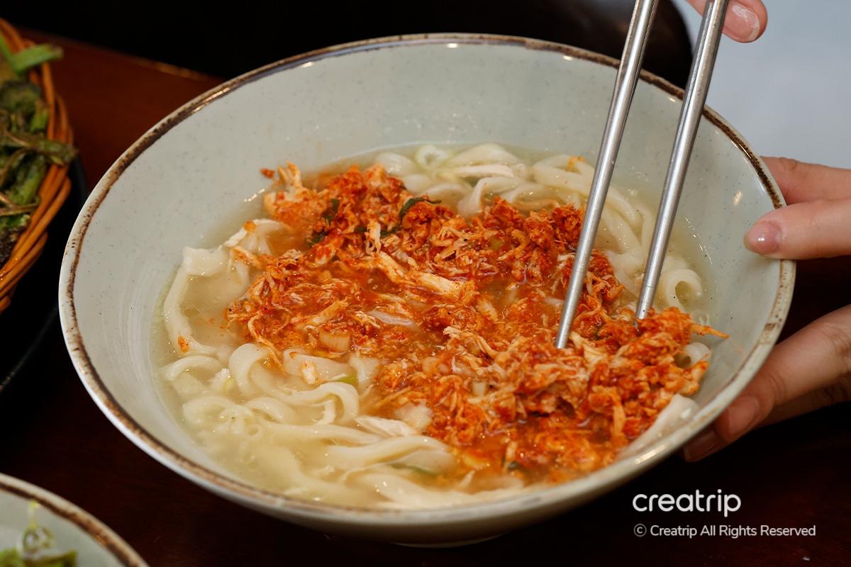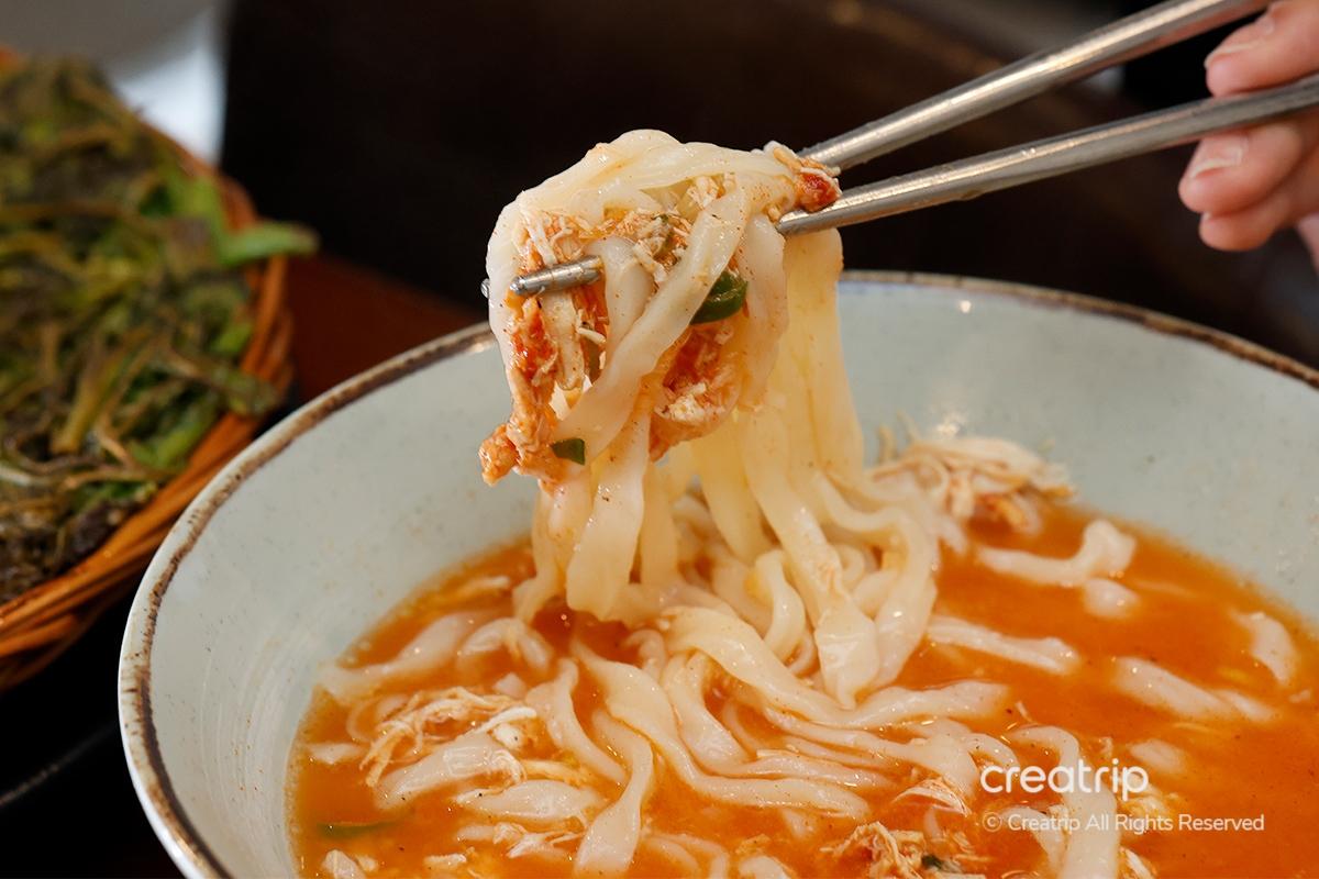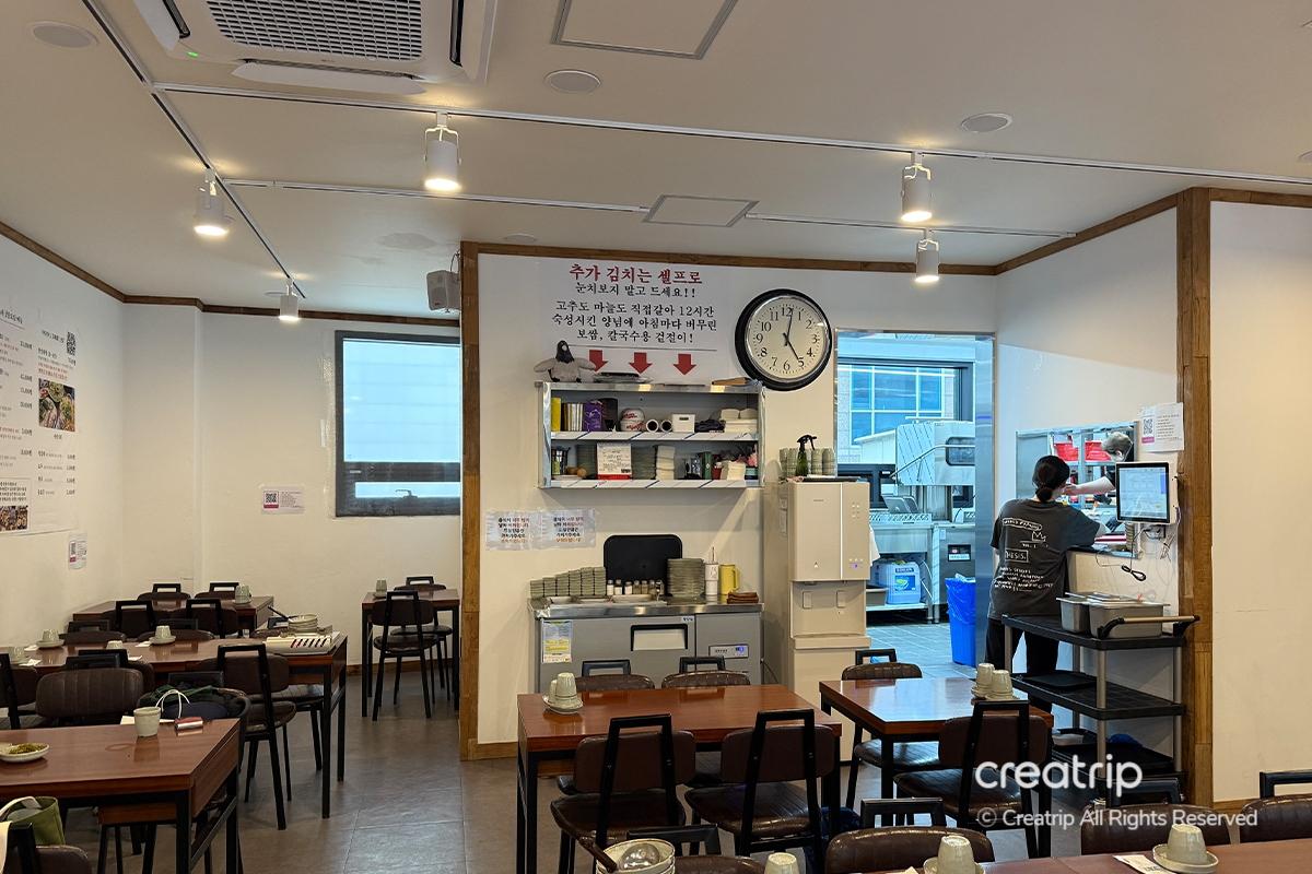 สถานที่แห่งนี้ ตั้งอยู่ในตรอกที่เงียบสงบ มีทุกอย่างตั้งแต่กัลกุกซูน้ำซุปรสชาติเข้มข้น หมูต้มเนื้อนุ่ม ไปจนถึงแพนเค้กกรอบ