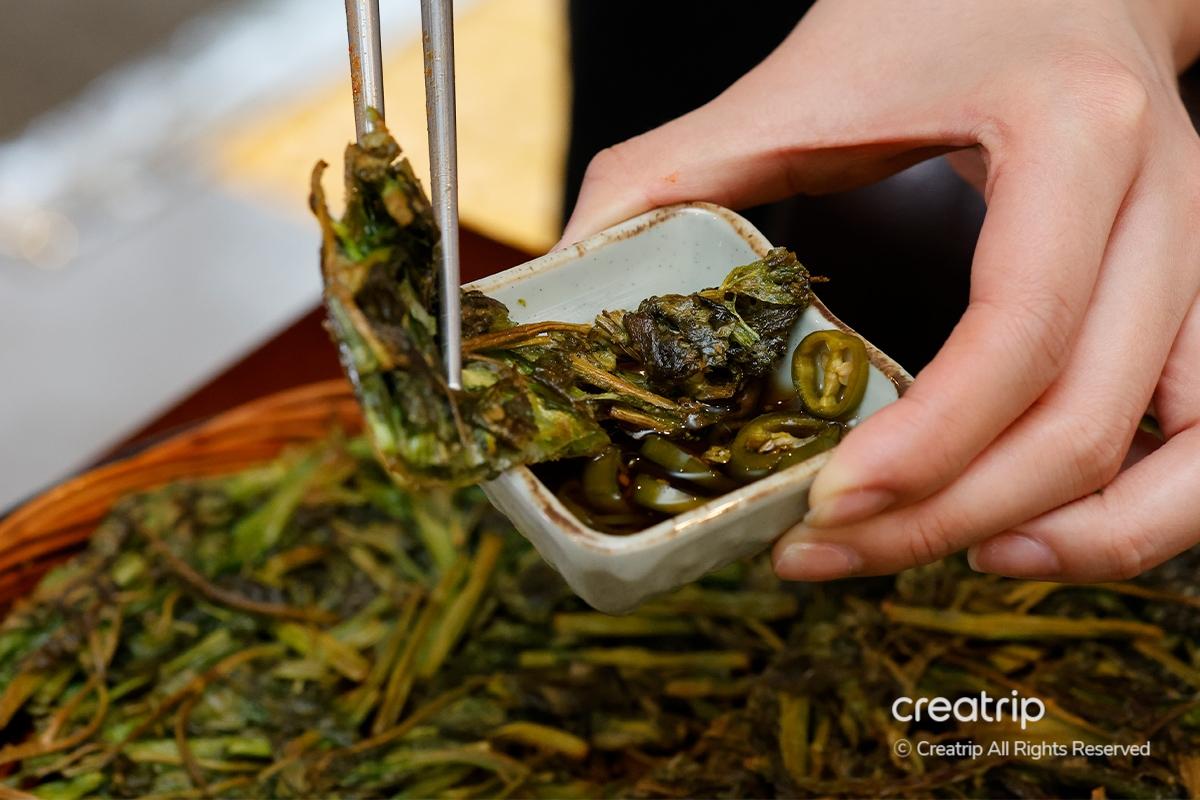 มันมีรสชาติคล้ายกระเทียมที่หมักเหมือนผักดอง ซึ่งช่วยขจัดความมันออกไปได้อย่างหมดจดและยังทำให้รสชาติอร่อยแท้ๆ ของเนื้อเด่นชัดยิ่งขึ้น