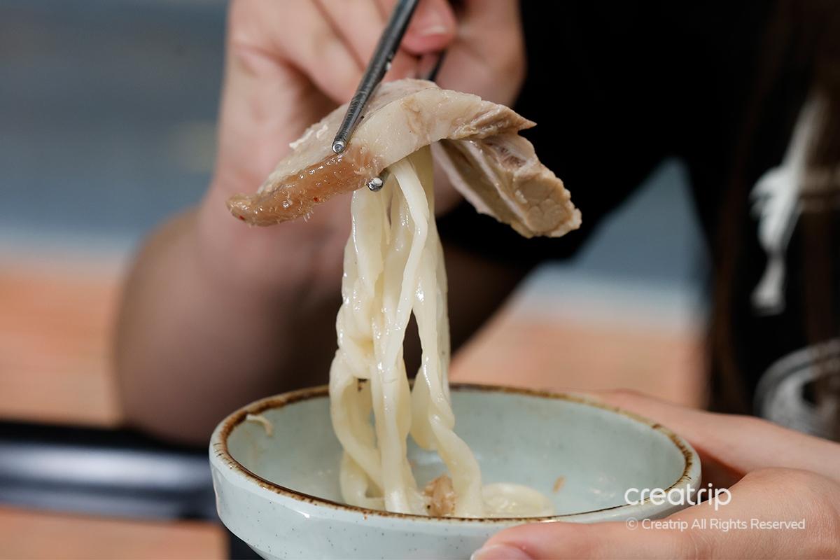 บางทีนั่นอาจเป็นเหตุผลที่น้ำซุปเข้มข้นและลึกซึ้งตั้งแต่คำแรก รสชาติที่เบาแต่กลมกล่อมเข้ากันได้ดีกับเส้นบะหมี่,