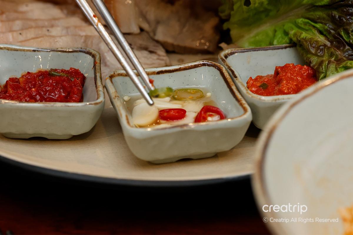 ต้องขอบคุณซอสทั้งสามชนิดที่เสิร์ฟพร้อมกับผักสด ฉันสนุกกับการได้ลองผสมรสชาติที่หลากหลาย