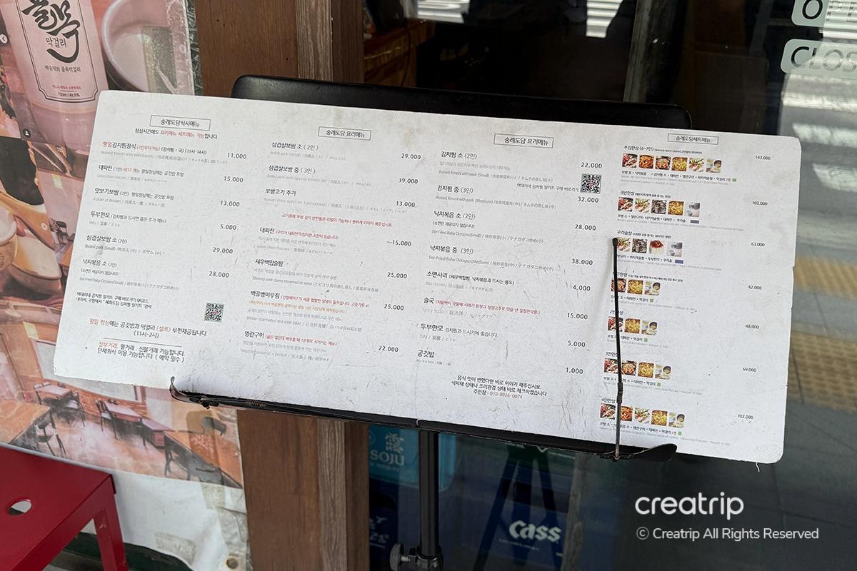 - ด้วยเมนูที่หลากหลาย เช่น บอสซัม กิมจิจิม หมึกผัดเผ็ด และพาจอน รวมถึงเมนูพิเศษอย่างยำหอยแครงเผ็ดและไข่ปลาพอลล็อคย่าง สถานที่นี้จึงเหมาะอย่างยิ่งสำหรับผู้ที่ต้องการลองอะไรแปลกใหม่ระหว่างการเดินทาง