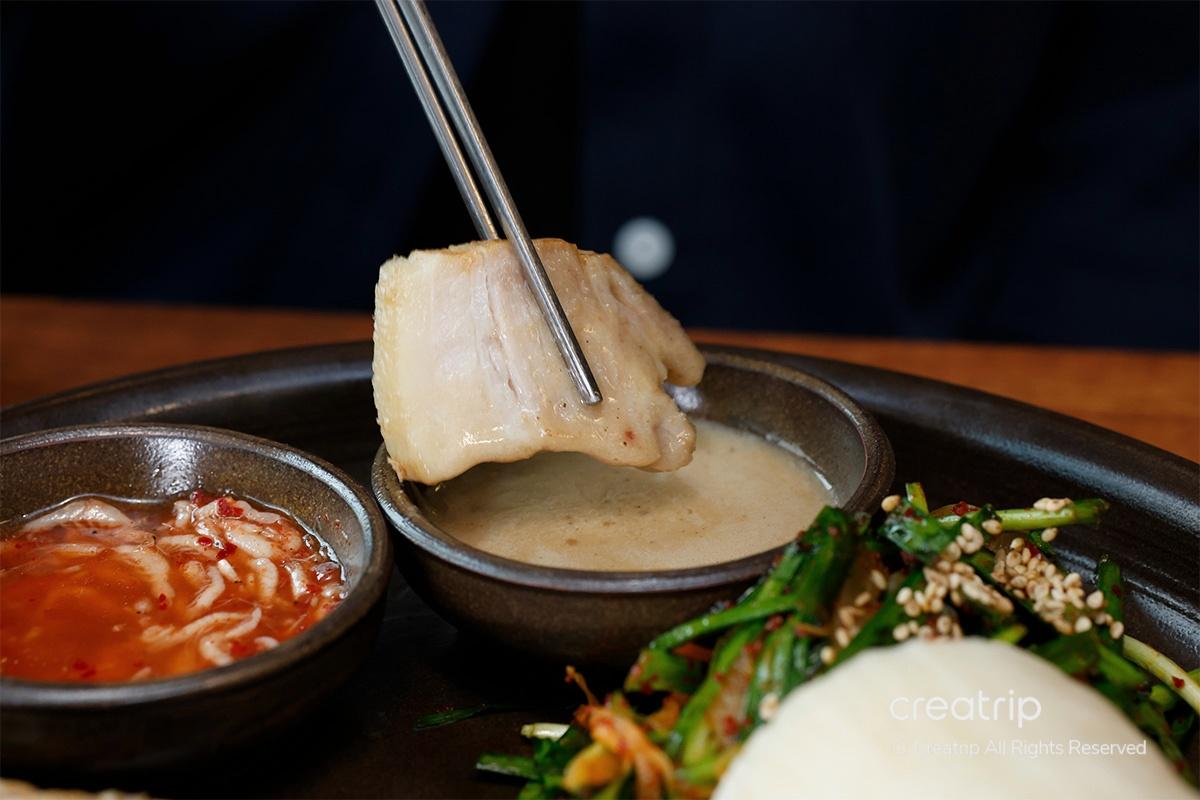 บอสซัมที่ 'Sungnye Dodam' ทำโดยการต้มหมูสดใหม่ที่ส่งมาทุกเช้าอย่างอ่อนโยน เพื่อให้เนื้อนุ่มและปราศจากกลิ่นไม่พึงประสงค์