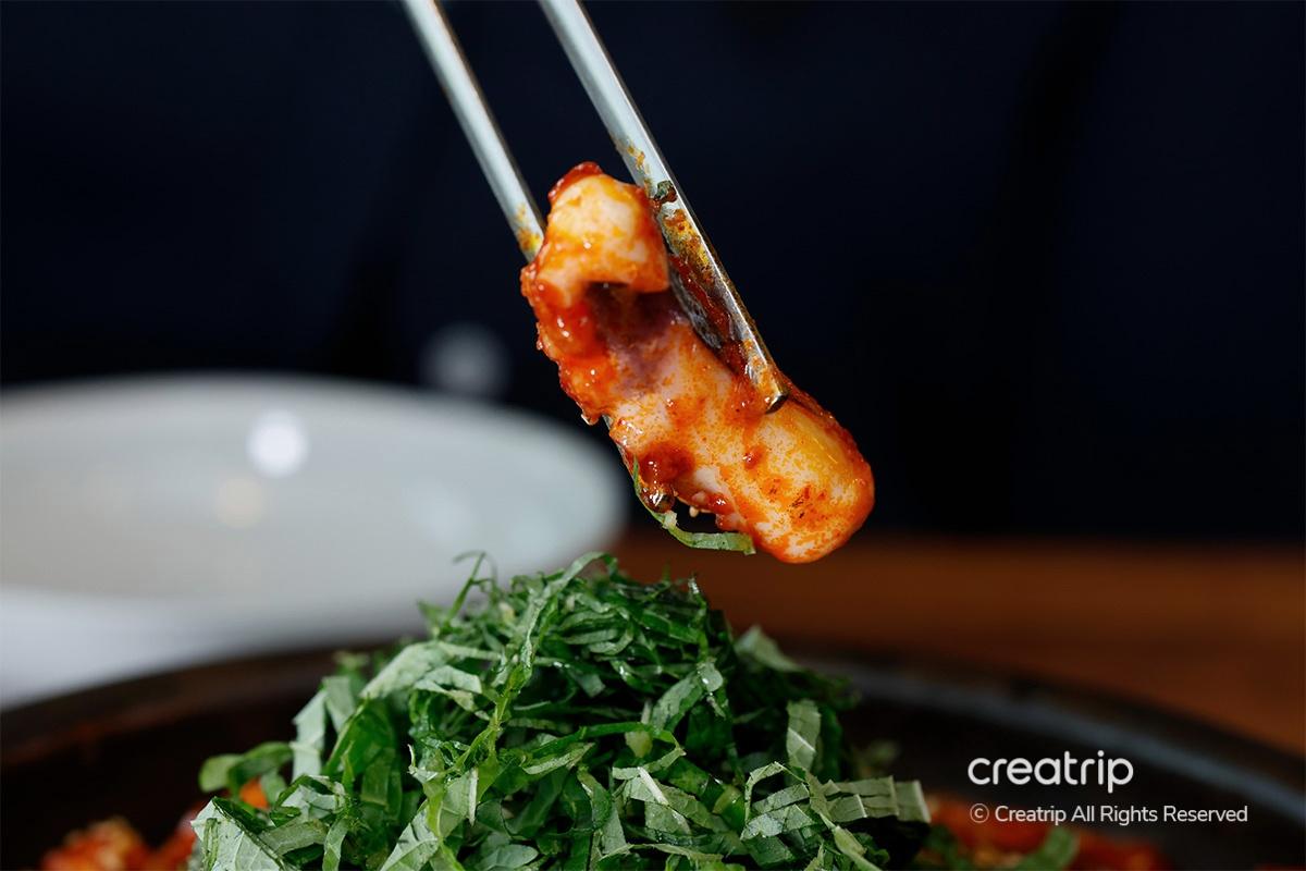 ปลาหมึกผัดที่ 'Sungnye Dodam' ทำจากปลาหมึกเหนียวนุ่มที่หมักด้วยซอสสูตรพิเศษอย่างดี ทันทีที่คุณกัดเข้าไปจะรู้สึกถึงรสเผ็ดและกลมกล่อมเต็มปาก!