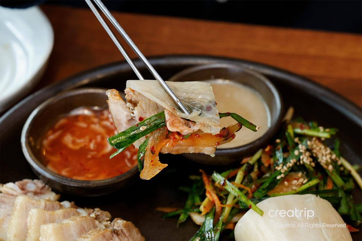 โดยเฉพาะอย่างยิ่ง บอสซัม 'Sungnye Dodam' มาพร้อมกับกิมจิหมักรสชาติเข้มข้น ซอสสูตรพิเศษ และหัวไชเท้าตากแห้งกับต้นหอมปรุงรสที่เตรียมสดใหม่ทุกวัน