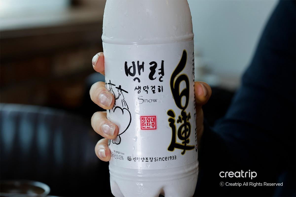 มักกอลลีที่เราสั่งวันนี้คือ 'Baekryeon Saeng Makgeolli' ซึ่งมีลักษณะเด่นคือกลิ่นสมุนไพรสดชื่น และรสชาติที่สะอาดนุ่มลื่น!