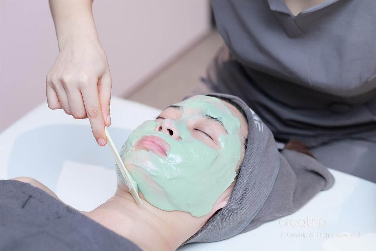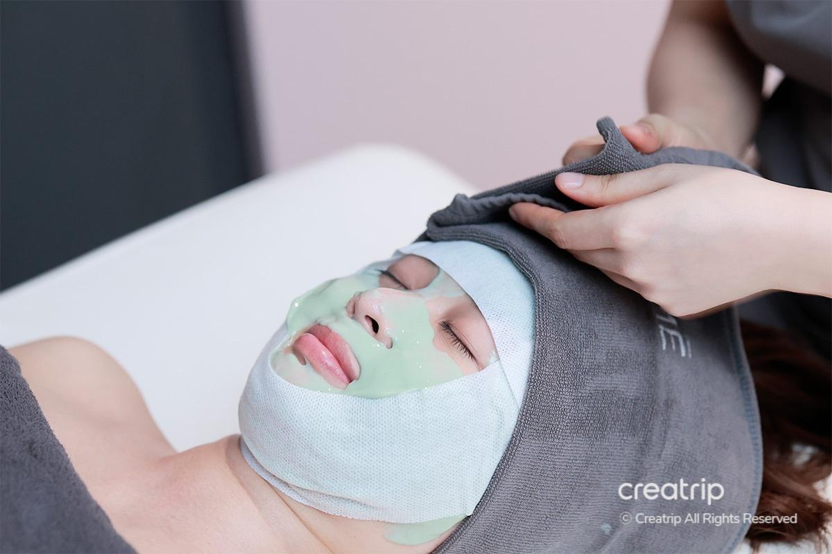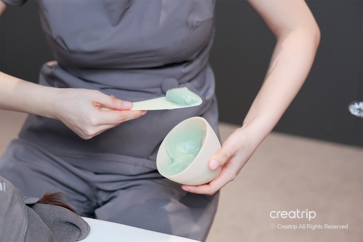 ในขั้นตอนนี้ พวกเขาใช้มาสก์โมเดลลิ่งชนิดทำให้ผิวนุ่มที่เลือกตามสภาพผิวของฉัน และฉันรู้สึกได้ทั้งความชุ่มชื้นและความสงบของผิว
