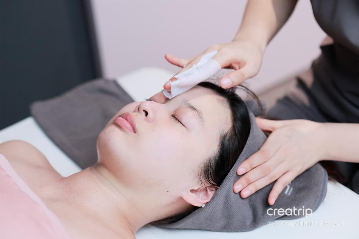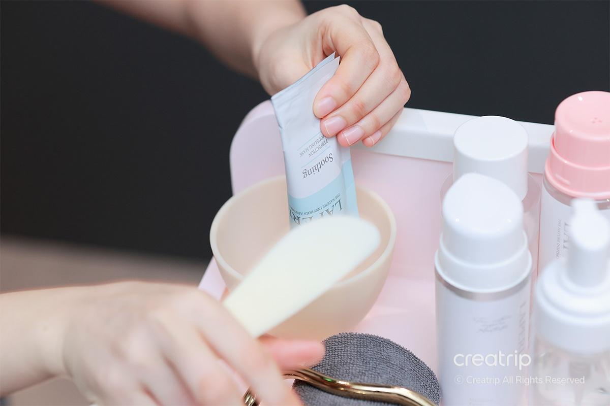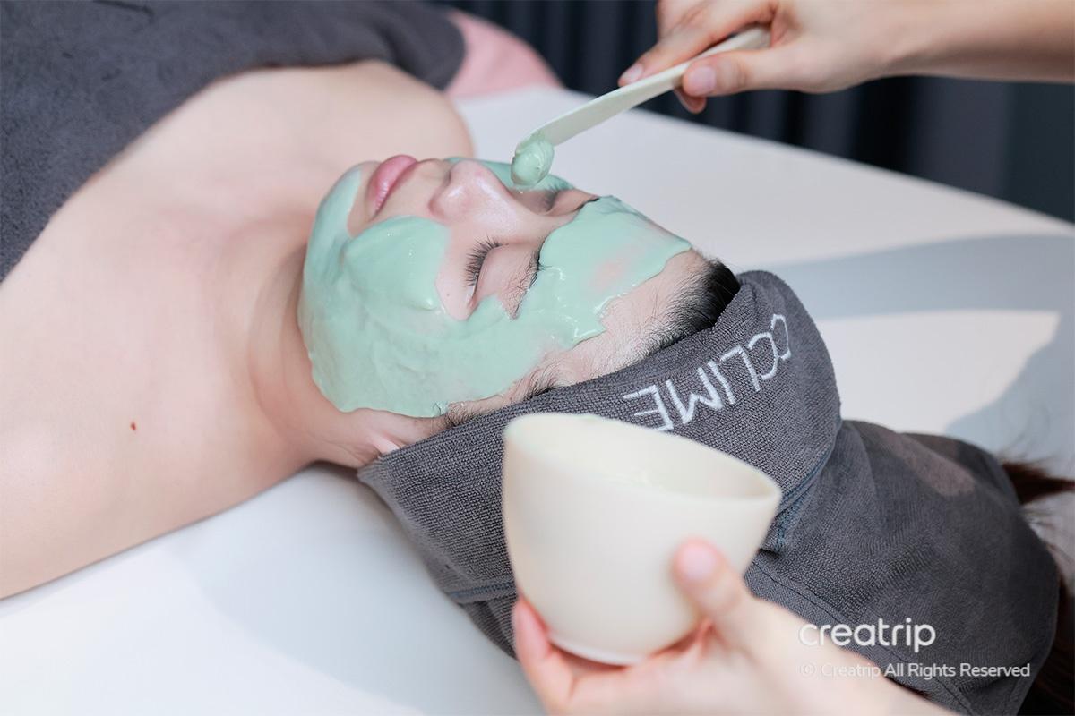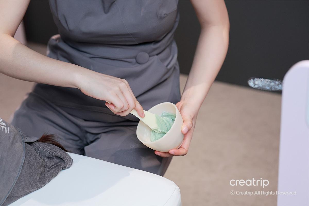 ในขั้นตอนนี้ พวกเขาใช้มาสก์โมเดลลิ่งชนิดทำให้ผิวนุ่มที่เลือกตามสภาพผิวของฉัน และฉันรู้สึกได้ทั้งความชุ่มชื้นและความสงบของผิว