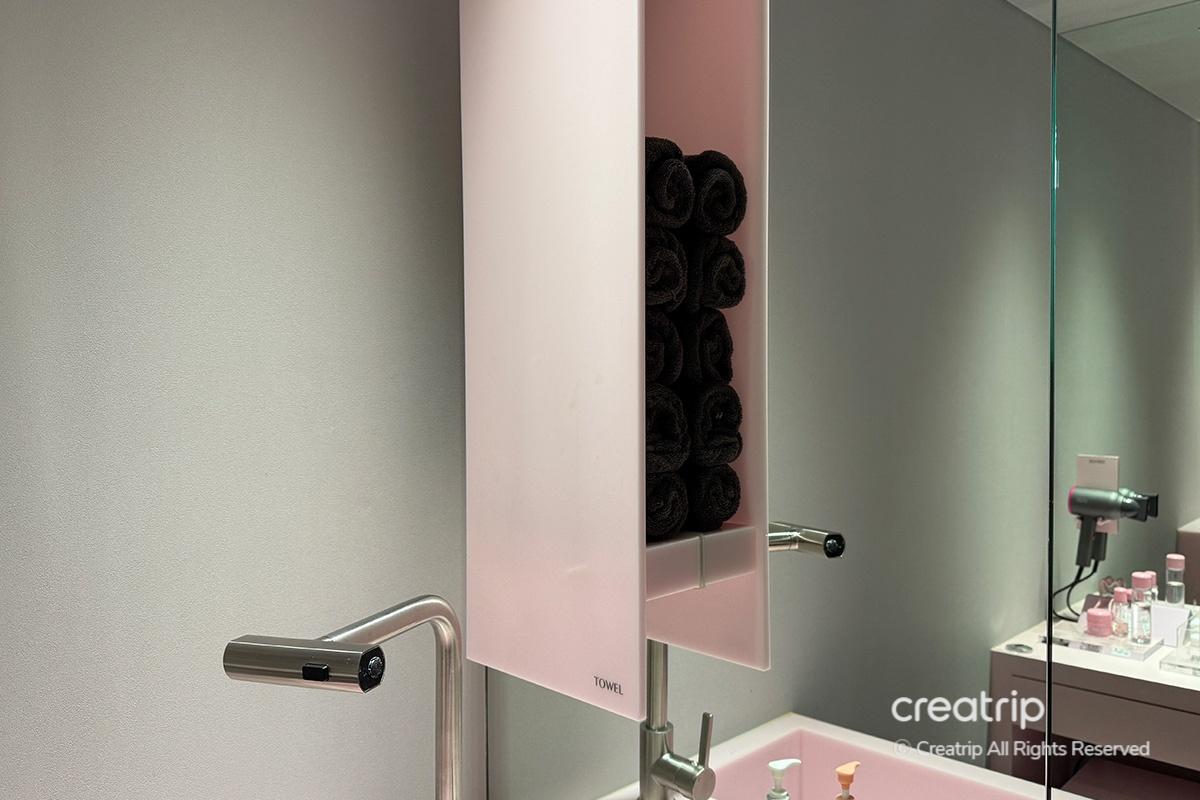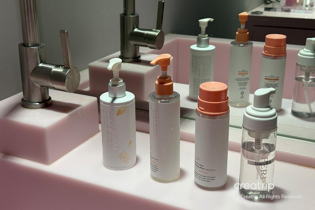 ในพื้นที่นี้ยังมีผลิตภัณฑ์ทำความสะอาดให้ใช้ด้วย ดังนั้นฉันจึงสามารถล้างเครื่องสำอางและล้างหน้าได้ รู้สึกสะอาดขึ้นมากที่จะได้เตรียมผิวให้สะอาดก่อนเริ่ม