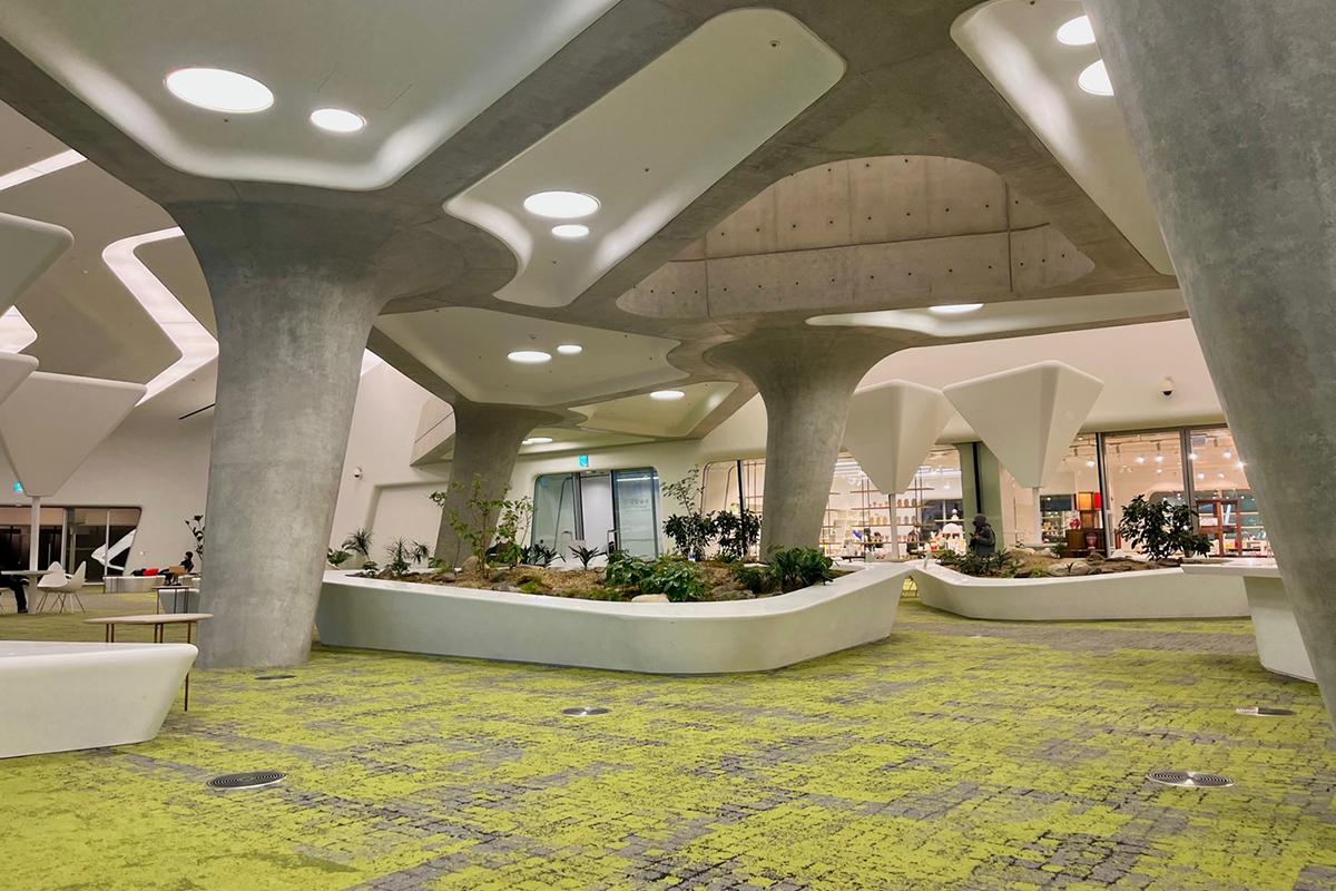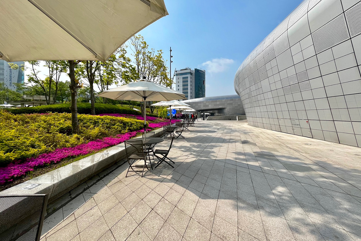 ถ้าไปที่ด้านหลังของ Art Hall จะมีคาเฟ่ ภายในมีพื้นที่กว้างขวางมากและเช่นเดียวกับห้องอื่นๆ ใน DDP เพดานสูงและหรูหรา