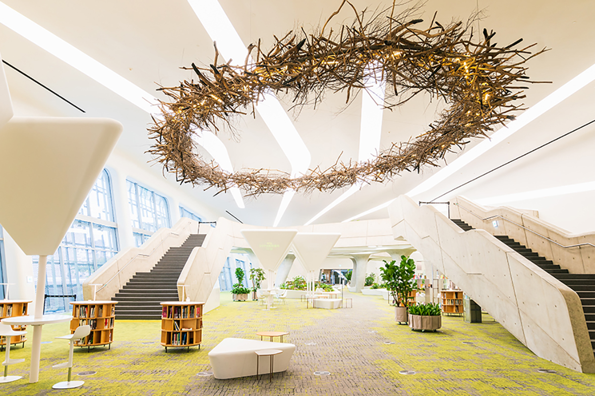 ใครๆ ก็สามารถเข้าไปใน D-Forest เพื่อศึกษา ประชุม หรือแค่พักผ่อนได้ เมื่อเราไปเยี่ยมชม รู้สึกเหมือนคาเฟ่ที่กว้างขวางและเงียบสงบ และเราเห็นบางคนกำลังทำงานบนแล็ปท็อปของพวกเขา (มีปลั๊กไฟ) ที่นี่ก็มีการจัดงานออกแบบและแบรนด์ด้วยเช่นกัน