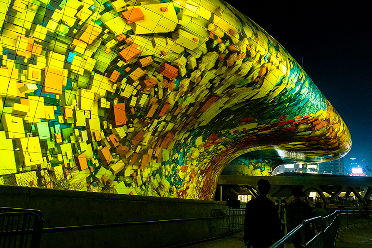 การออกแบบที่มีชื่อเสียงของอาคาร DDP ถูกออกแบบโดยหนึ่งในสถาปนิกที่มีชื่อเสียงระดับโลก, Zaha Hadid. ลักษณะทางสถาปัตยกรรมของรูปลักษณ์เมืองที่เรียบง่ายนี้ทำให้สถานที่แห่งนี้เป็นหนึ่งในผลงานสถาปัตยกรรมที่โดดเด่นที่สุดของกรุงโซล.