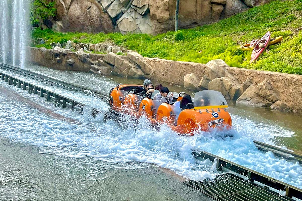 Thunder Falls เป็นเครื่องเล่นที่คุณสามารถอาบน้ำในหน้าร้อนได้! ผู้มีประสบการณ์รู้ว่าที่นั่งนั้นสำคัญสำหรับเครื่องเล่นนี้ คนที่นั่งข้างหน้าจะโดนสาดน้ำเยอะที่สุด เล่นเป่ายิ้งฉุบเพื่อแบ่งที่นั่งกันเถอะ!