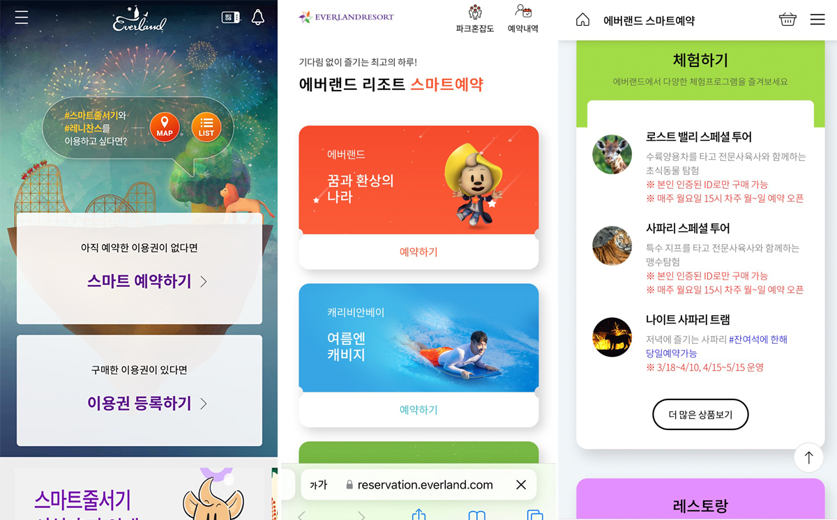 บัตร Everland และทัวร์พิเศษสามารถซื้อได้ผ่าน Smart Reservation ล่วงหน้าหนึ่งสัปดาห์ หากคุณวางแผนที่จะเยี่ยมชมสวนสนุกภายใน 1-2 สัปดาห์ ทำการจองได้ในวันจันทร์ของสัปดาห์ก่อนเวลา 15:00 น.! สิ่งเหล่านี้เป็นที่นิยมมากดังนั้นคุณจะต้องเข้าสู่ระบบล่วงหน้าและเตรียมพร้อม