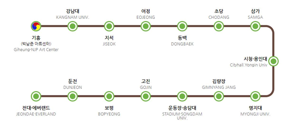 เส้นทาง: สถานี Sinnonhyeon - สาย Sinbundang สถานี Gangnam - สถานี Yangjae - เอเวอร์แลนด์
