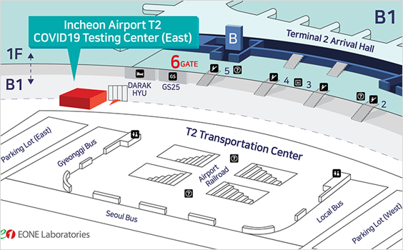 1. ศูนย์ตรวจ COVID-19 สนามบินอินชอน T2 (ฝั่งตะวันออก)