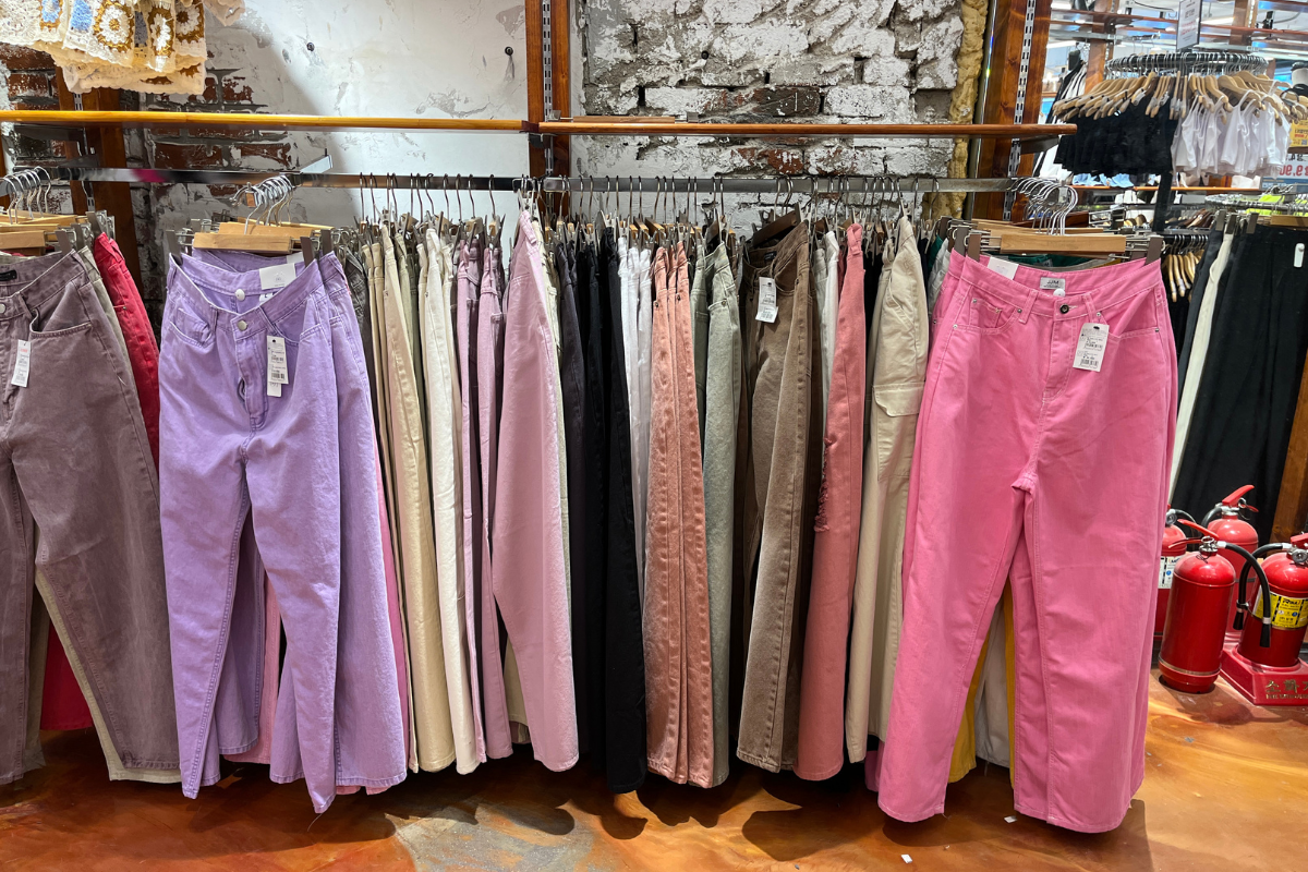 มีตัวเลือกที่ไม่เหมือนใครมากมายเช่นกางเกงยีนส์สีสันสดใสที่พบบ่อยในถนนของ Hongdae! จับคู่กับเข็มขัดสะดุดตาและคุณก็ได้ลุคของนักเรียนศิลปะ Hongdae อย่างสมบูรณ์แบบ!