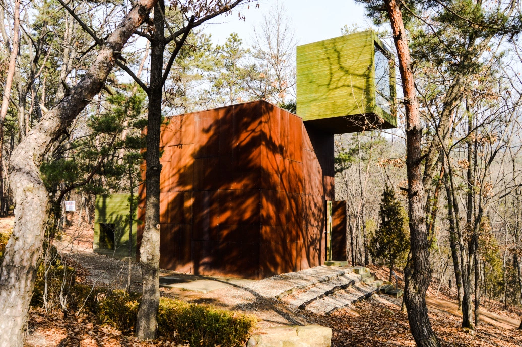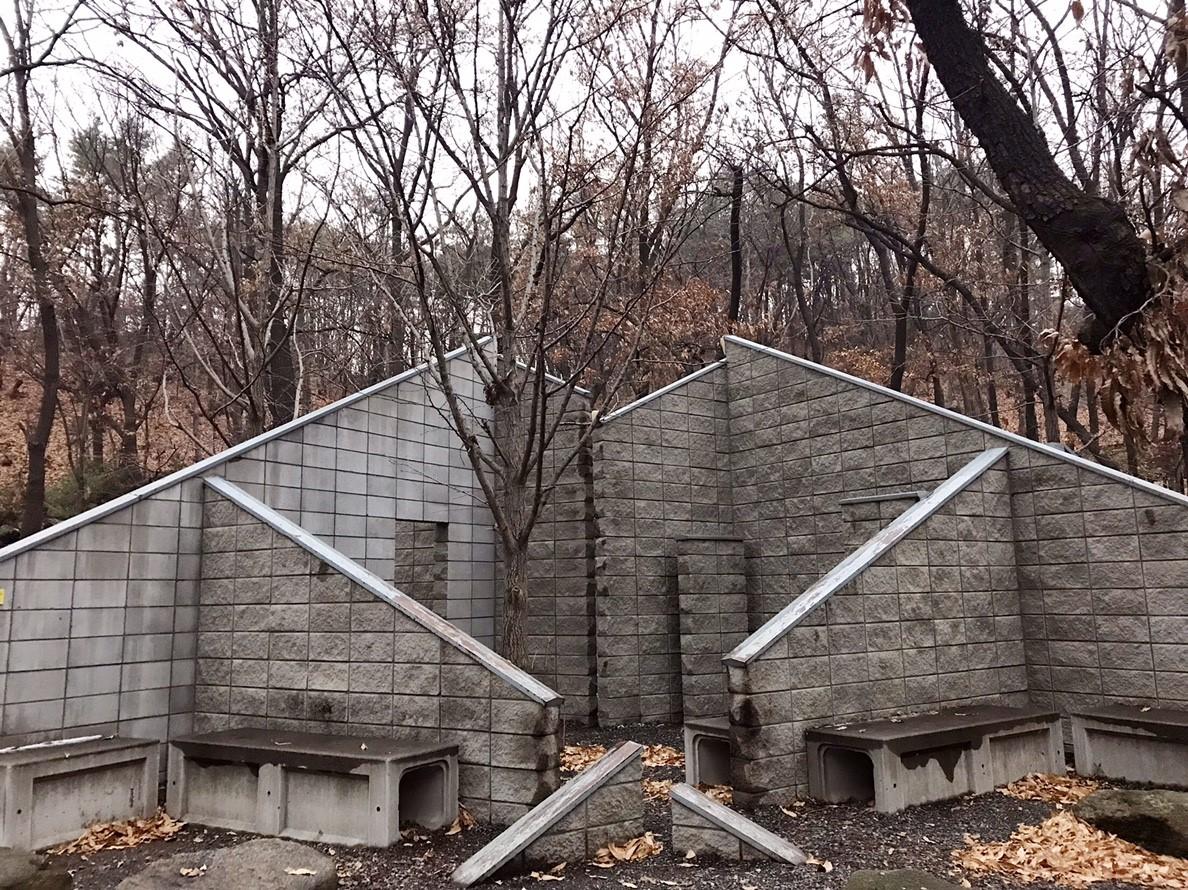 ถัดมาอีกก็จะเจอกับ "Anyang Crate House-Dedicated to the Lost (Pagoda)" สีสันสดใสโดดเด่นออกมาจากธรรมชาติของฤดูหนาวเกาหลีมากๆเลยละค่ะ บริเวณนี้ไม่ว่าจะถ่ายรูปที่ด้านนอกแบบโคสอัพ หรือถ่ายจากด้านในแบบมุมกว้างก็สวยนะคะ
