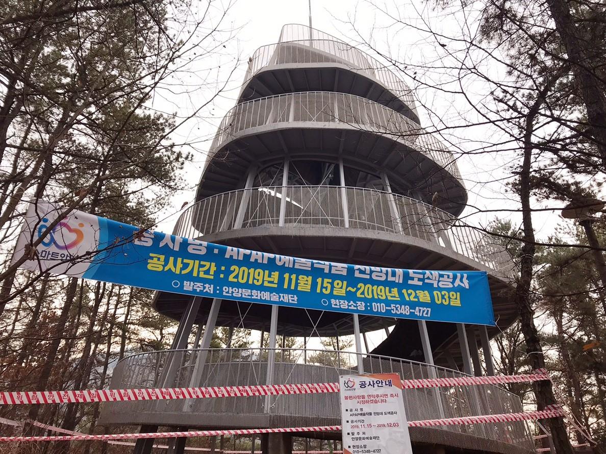 เห็นรูปแล้วเศร้าอะไรแบบนี้!! ตอนที่เราเดินทางไปบริเวณจุดชมวิว "Anyang Peak Observatory" ปิดให้บริการค่ะ ที่นี่ทุกคนสามาถที่จะชมวิวของสวนโดยรอบ พร้อมกับถ่ายรูปสวยๆได้ด้วยนะคะ เสียดายมากเลย รอบหน้าต้องกลับไปแก้ตัวใหม่แน่นอนค่ะ!