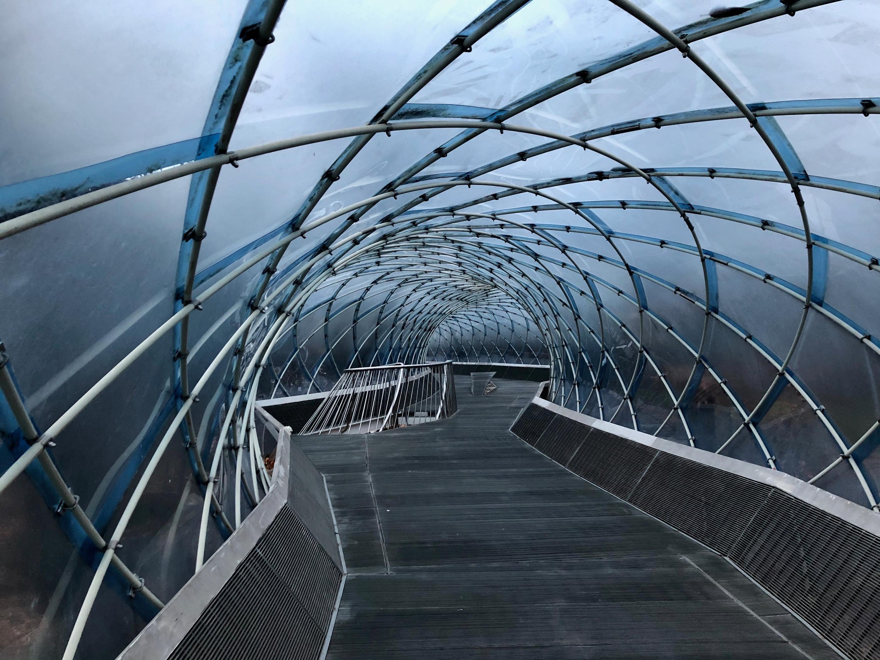 วันที่แสงดีจะสามารถถ่ายอุโมงค์อันนี้ออกมาได้สวยมากเลยละค่ะ เพราะว่าแสงแดดจะสะท้อนกับเพดานใสสีฟ้า พร้อมกับเงาของต้นไม้ที่อยู่รอบๆ แต่ตอนที่เราเดินไปถึงบริเวณนี้คือประมาณ 4 โมงกว่าของหน้าหนาว ซึ่งแสงหมดค่อนข้างไว ภาพที่ได้ออกมาสวยดูไม่สดใสเท่าไหร่เลยค่ะ TT