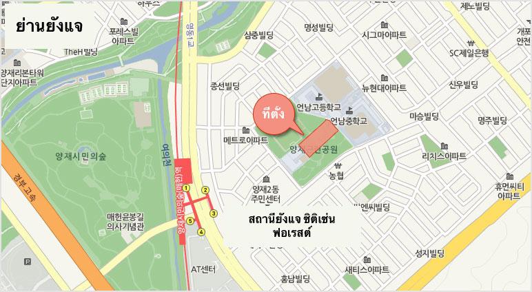 วิธีเดินทาง : สถานียังแจ ซิติเซ่น ฟอเรสต์ (양재시민의숲(매헌)역)