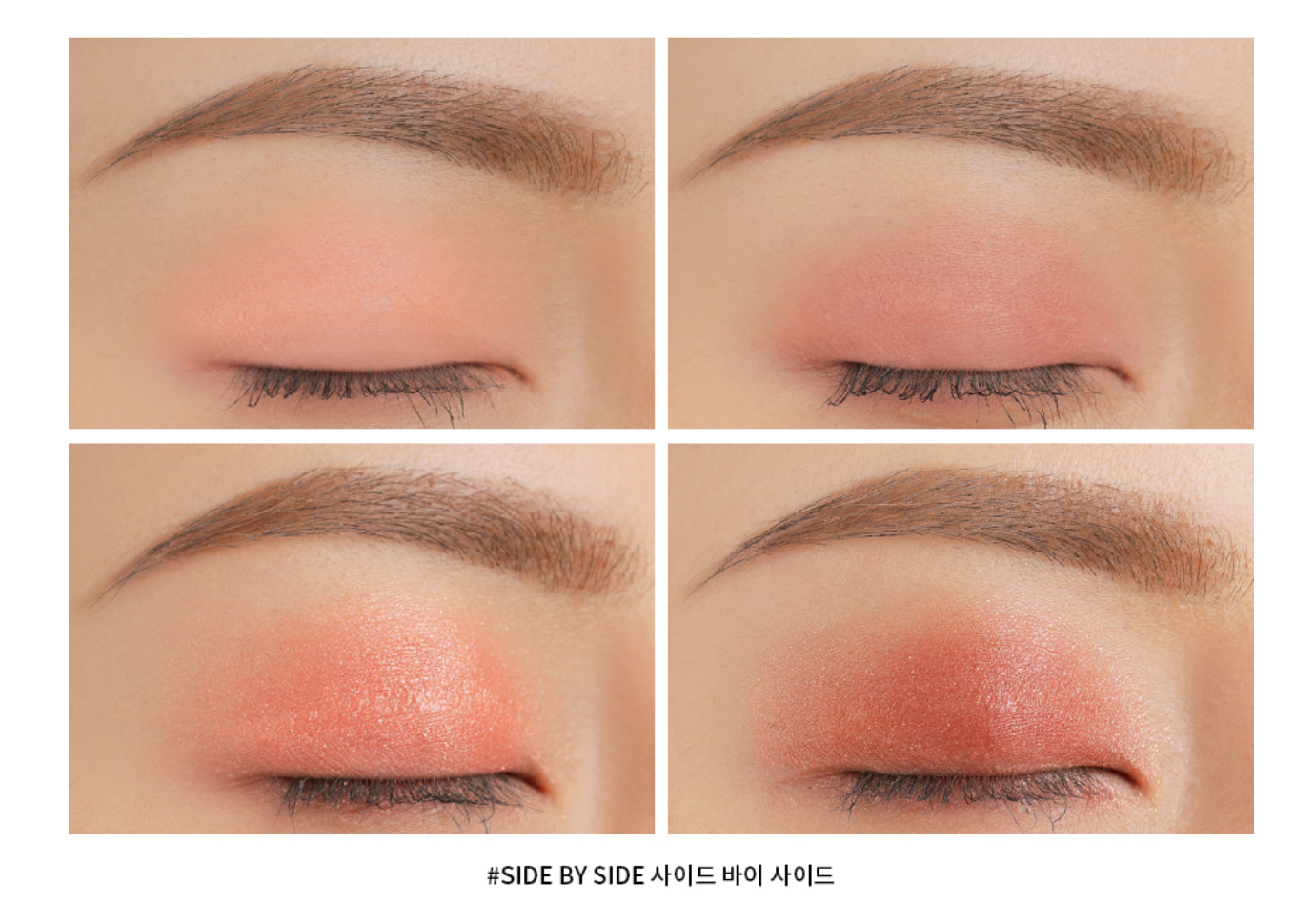 สุดท้ายสำหรับไลน์เครื่องสำอางก็คืออายแชโดว์พาเลทที่มาด้วยกัน 2 โทนสีคือ #Side By Side ที่ออกโทนชมพูแดง และ #Almond Fidge ที่ออกโทนส้มน้ำตาล ใครที่อยากแต่งตาแบบคนเกาหลีละก็ ถือว่าเป็นตัวเลือกที่ดีมากๆเลย เพราะในตลับมี 4 สี ซึ่งสามารถทาผสมกันออกมาได้อย่างยอดเยี่ยม บอกเลยว่าเหมือนคนเกาหลีเป๊ะค่ะ โดยเฉพาะสี #Side By Side เพราะคนเกาหลีชอบแต่งตาในโทนสีชมพูแดงค่ะ