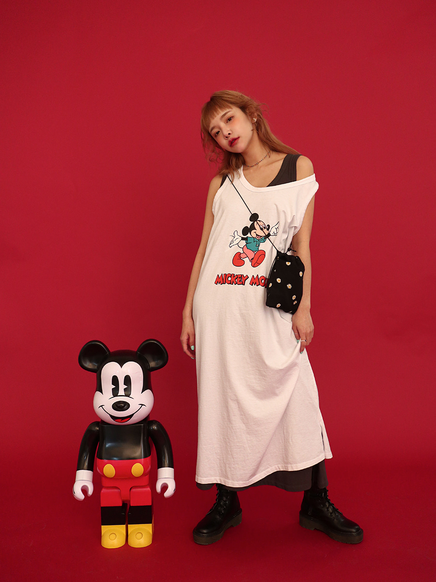 สำหรับคนที่ชอบใส่แขนกุดคอลเลคชั่นนี้ก็มีทั้งเดรสและเสื้อยืดให้ได้เลือกกันค่ะ มาเริ่มที่เดรสกันก่อนเลย! เดรสคอลเลคชั่น Disney นี้เป็นเดรสยาว พร้อมลายปริ้นท์มิกกี้เมาส์ขนาดใหญ่ แต่ส่วนตัวแอบคิดว่าเหมือนชุดนอนไปนิดนึงค่ะ ถ้าใส่น่าจะต้องหาอะไรมาแมทช์เพิ่มเติมจะได้มีลูกเล่นซักหน่อย