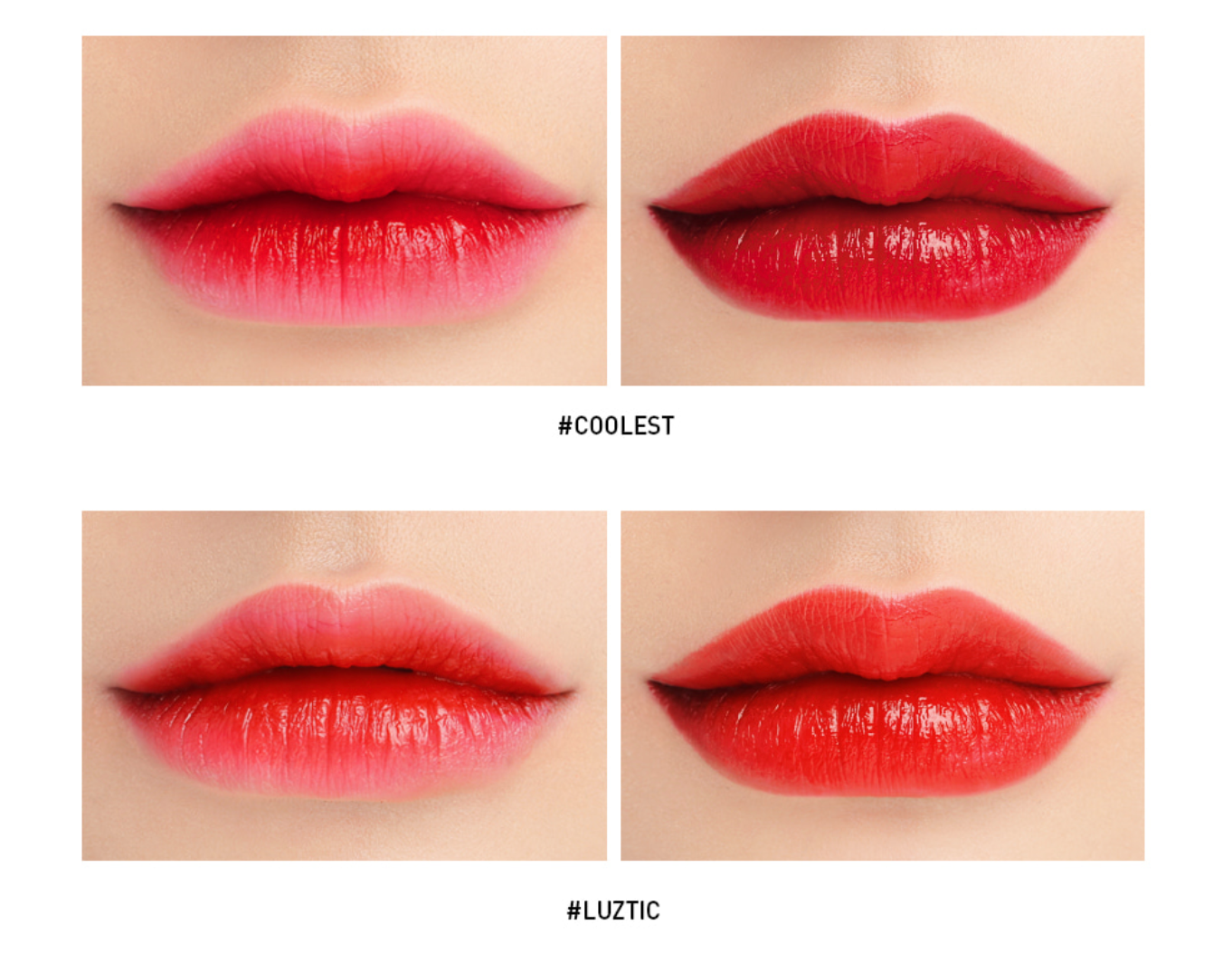 สีแรก Coolest จะเป็นสีแดงที่คนชอบทาทินท์หรือลิปสีแดงจะต้องมีเลยละค่ะ เพราะว่าสีสวยจริงๆ เหมาะกับหลายโทนสีผิวด้วย ส่วน Luztic เหมาะกับคนที่ชอบสีแดงโทนส้มค่ะ สาวๆกับลิปแดงก็ต้องนิดนึงเนอะ...ต้องมีติดกระเป๋าซักหน่อย หนุ่มๆจะได้เห็นตั้งแต่ในระยะไกลเลย อิอิ