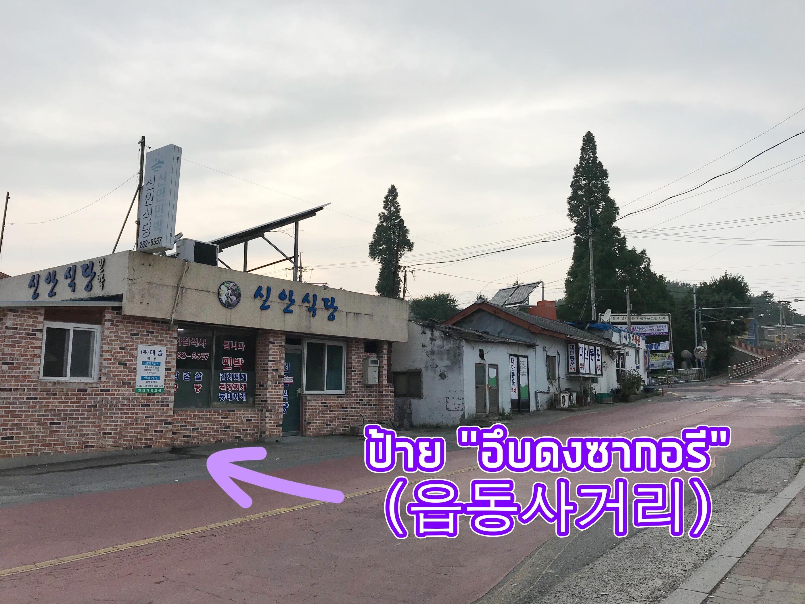 เนื่องจากเป็นรถบัสโลคอล ฉะนั้นภาษาเกาหลีล้วนเลยค่าา ป้ายที่เราจะต้องมาลงเพื่อต่อรถไปยังเกาะสีม่วงก็คือป้าย "อึบดงซากอรี" (읍동사거리) สำหรับคนที่ไม่รู้ภาษาเกาหลีให้สังเกตุสถานีในรูปภาพด้านบนไว้นะคะ รถบัสจะมาส่งที่นี่สำหรับป้ายนี้ค่ะ หรือไม่ก็บอกคนขับรถให้ช่วยบอกได้ค่ะ (นั่งเลยสถานีเรือเฟอร์รี่มาซักพักใหญ่)