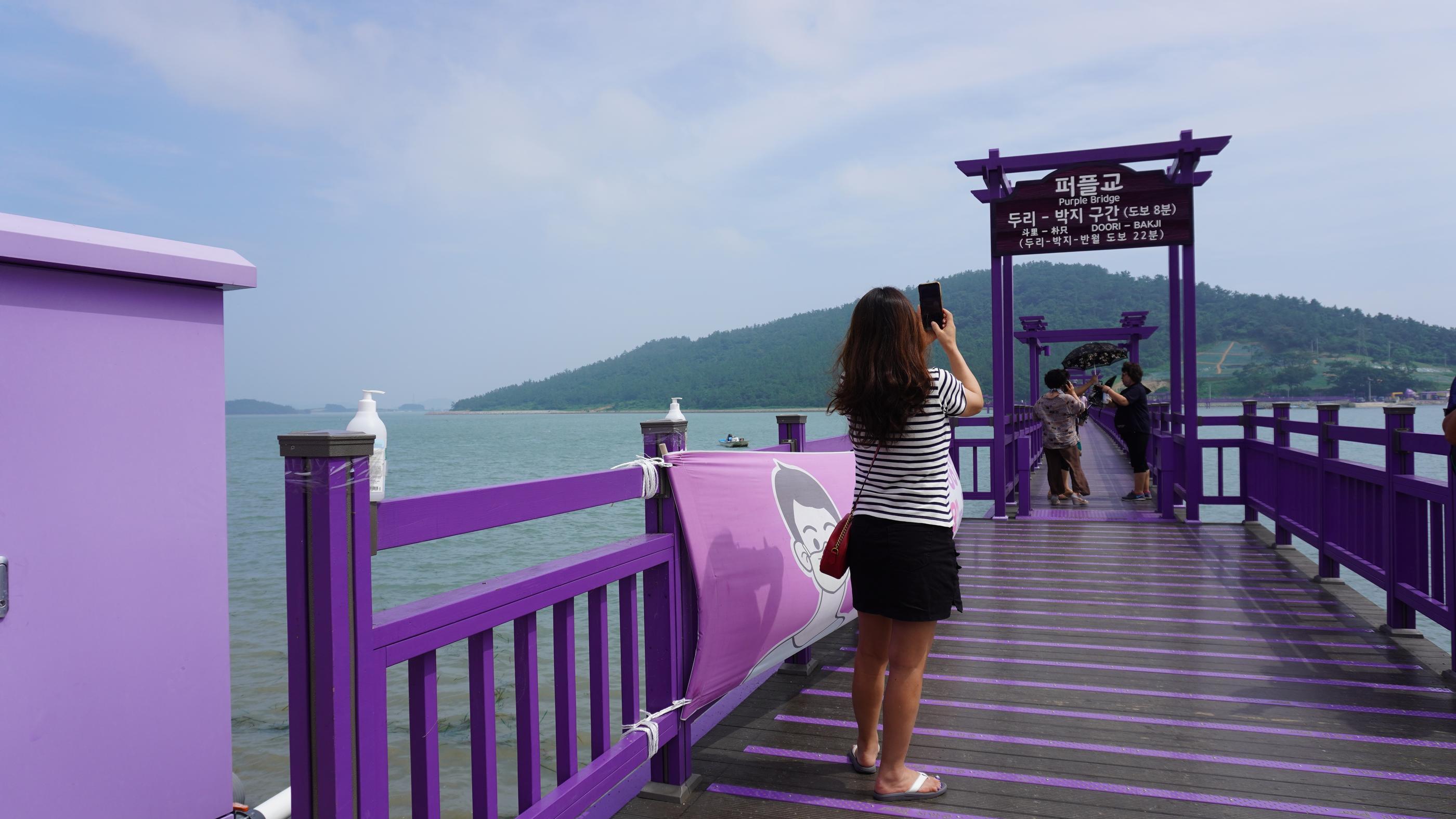 เดินไปต่อที่เกาะพันวอลโดกันต่อเลย~ โดยจากเกาะพัคจีโดใช้ระยะเวลาในการเดินไปยังเกาะพันวอลโด 15 นาทีค่ะ แนะนำให้ถ่ายรูปบริเวณต้นสะพานมากๆ เพราะว่าจะเก็บได้ทั้งสะพานและบ้านสีม่วงเลยละค่ะ คิ้วท์มากๆๆ